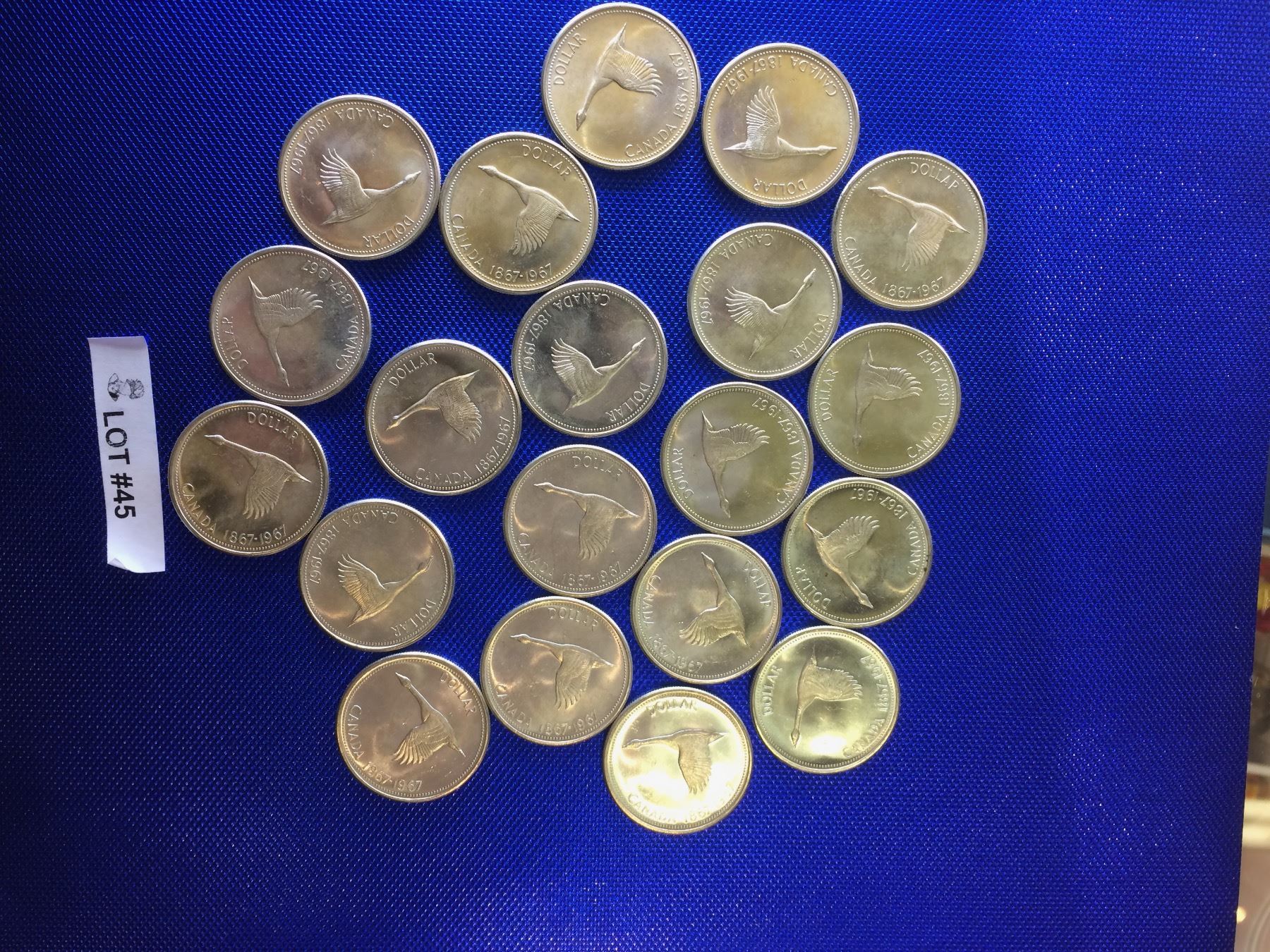 CANADA 1967 DOLLAR, LOT OF 20 COINS ALL UNC