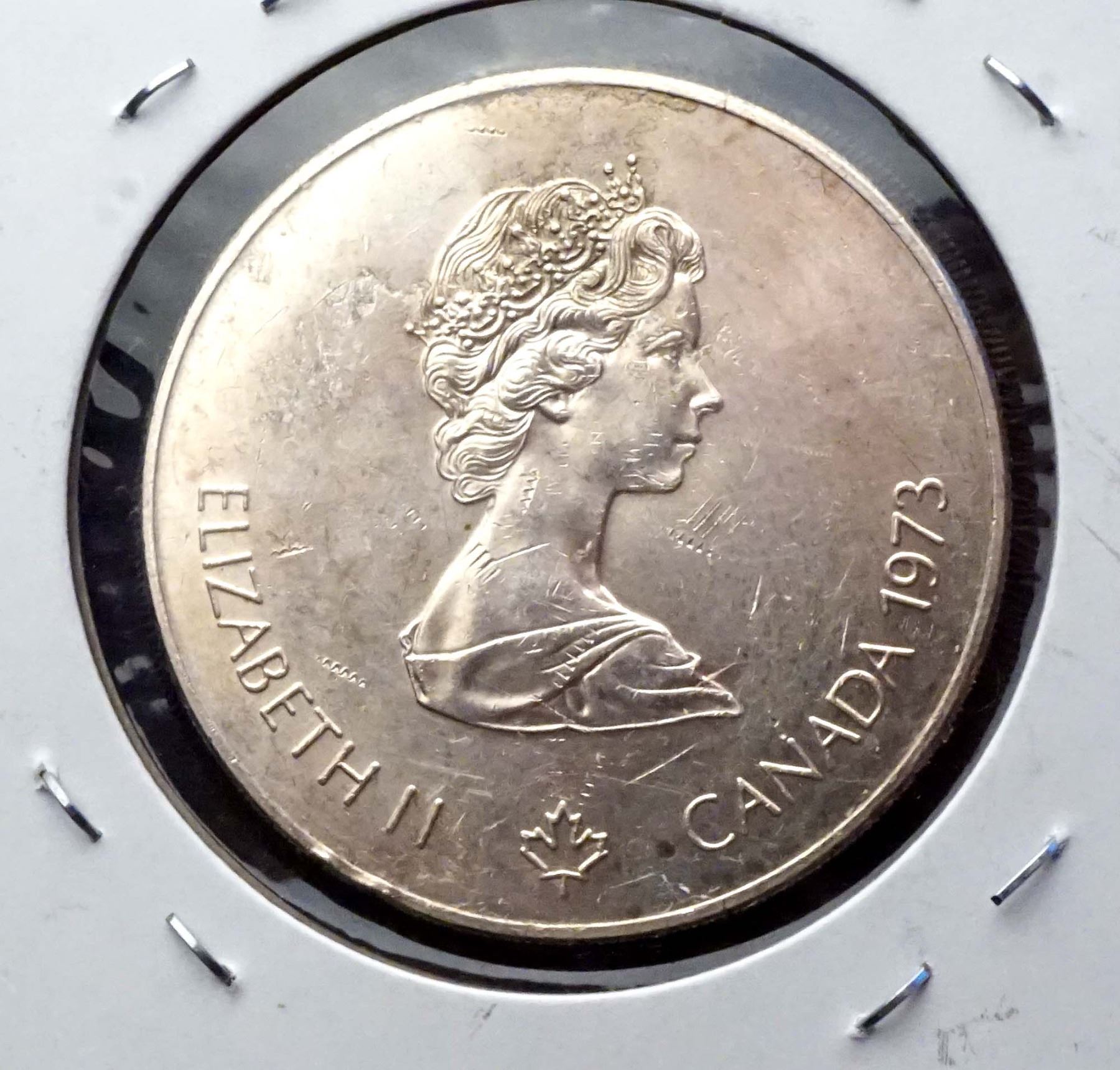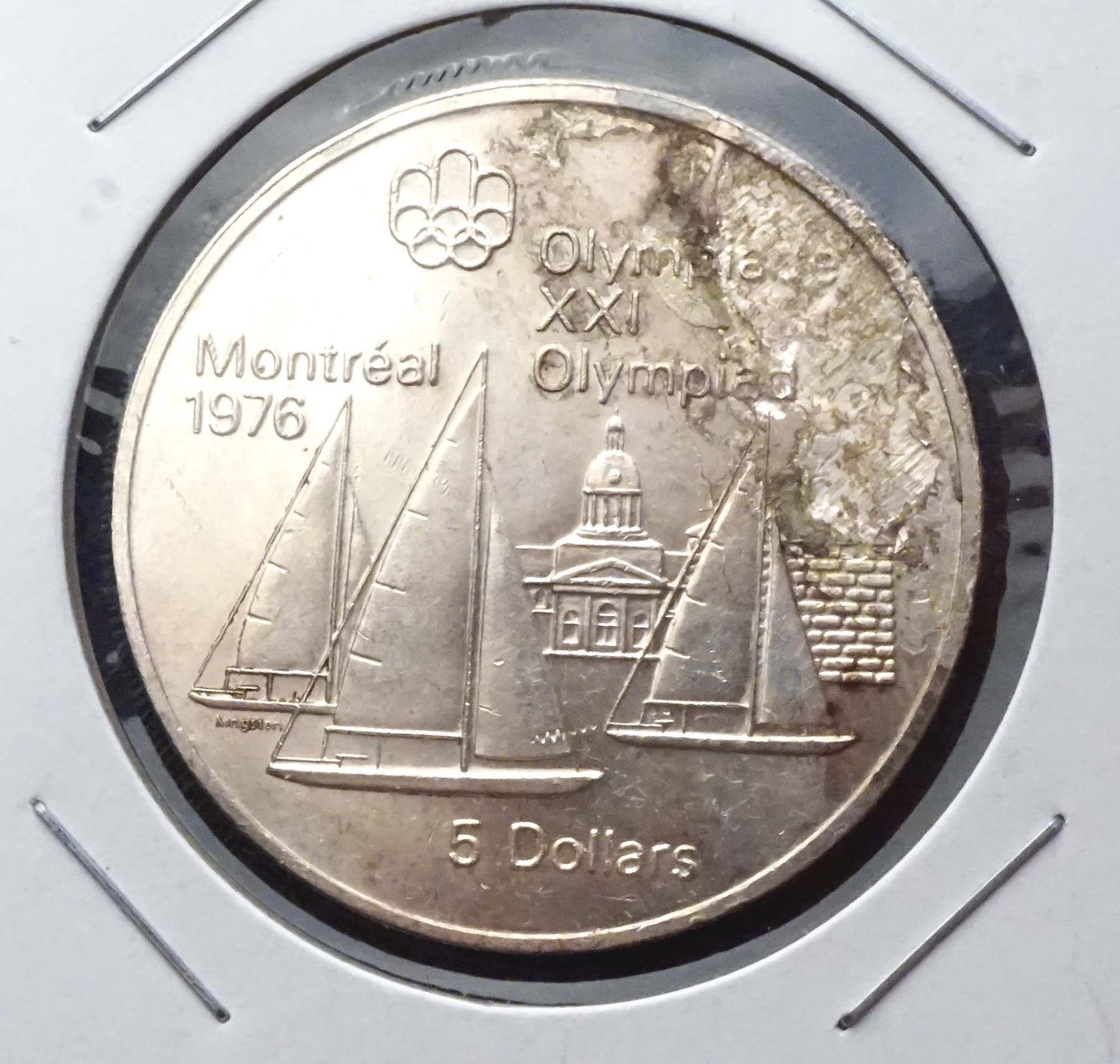 CANADA 1973 5 Dollar Silver Olympic Coin w/ Reverse Metal Loss EF