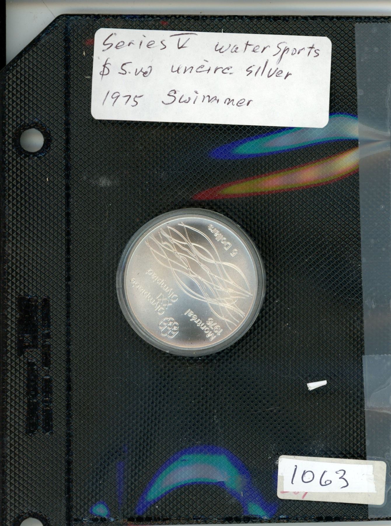 CANADA 1975 $5.00 SERIES V UNCIRC. SILVER OLYMPIC COIN SWIMMER