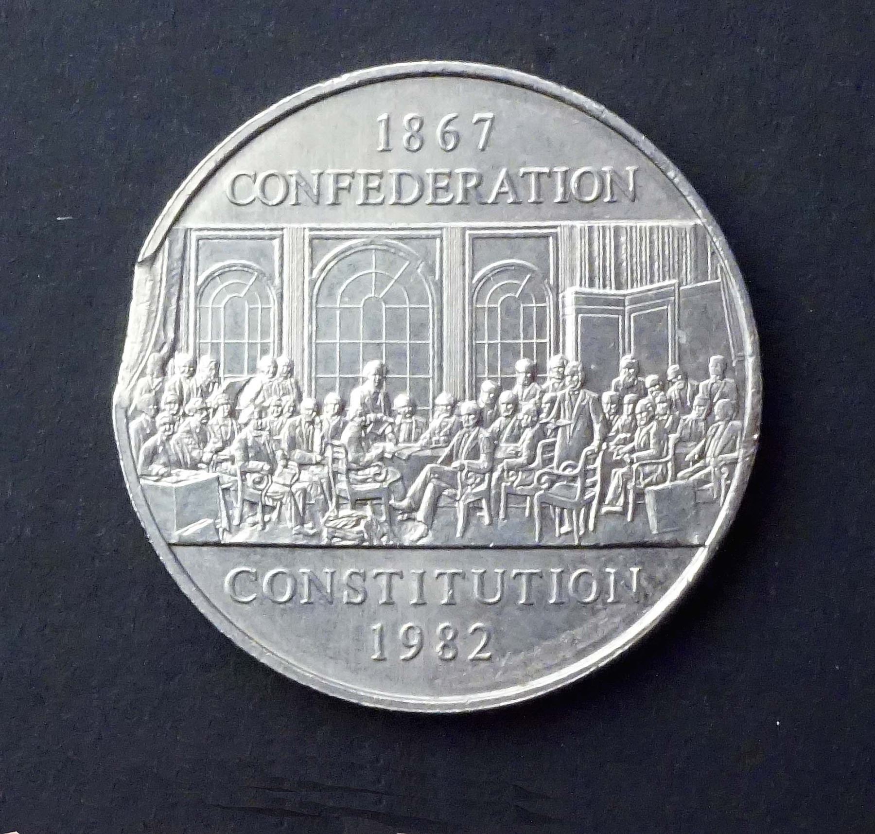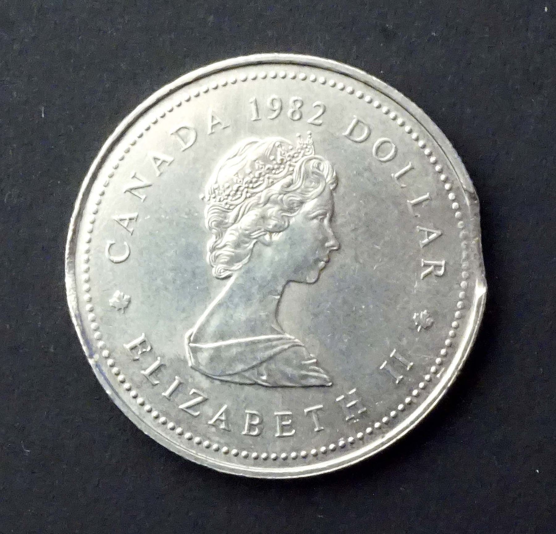 CANADA 1982 Dollar Cupro-Nickel Constitution w/ clipped Planchet Error Coin UNC