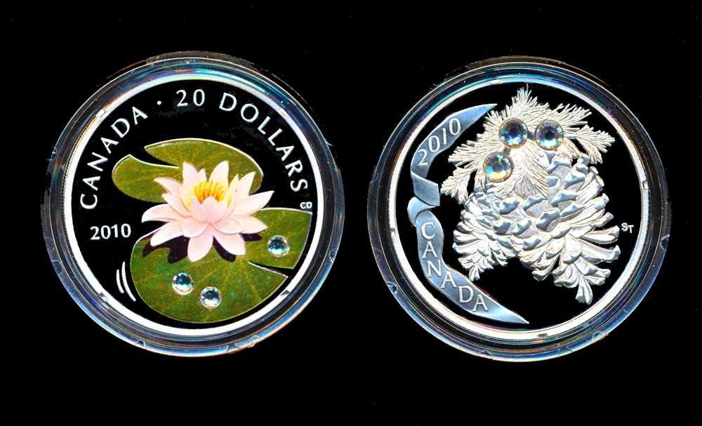 (Nenuphar, Pomme de pin) Avec capsule qualite epreuve. Argent 999 1 oz chaque