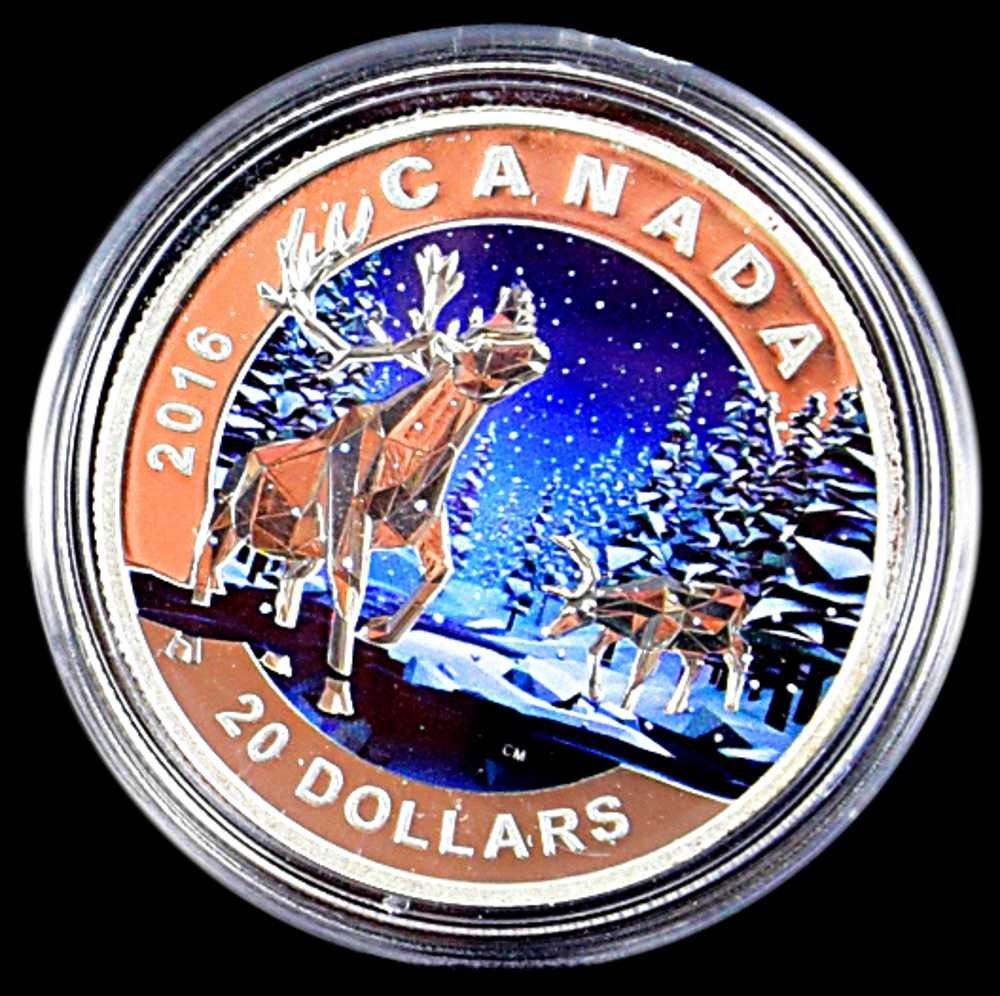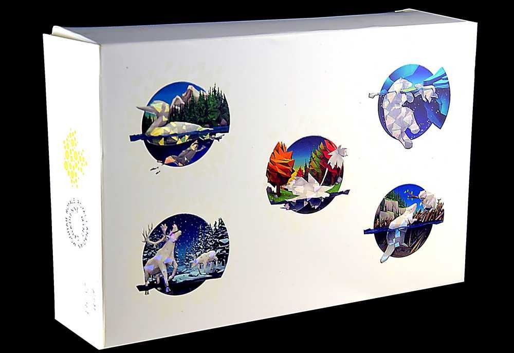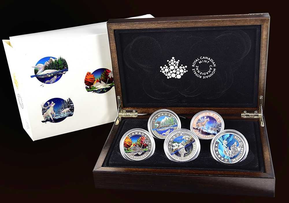(Le huard, Le caribou, L'ours polaire, La feuille d'erable, Le castor) Avec boite et papier, sans capsule, Argent 999 31,83 grammes chaque. ASW 5,11224 oz.