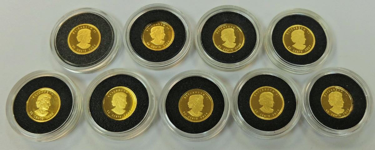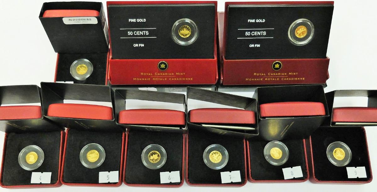 COMPLETE SET OF SPECIAL ISSUE MAPLES, 1/25 OZ EA PURE GOLD