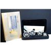 .9999 AG 1.85 tr. oz. $5.00 1 oz, $4.00 1/2 oz, $3.00 1/4 oz and $2.00 1/10 oz., all encapsulated in 4 hole black clam box with COA and special sleeve.