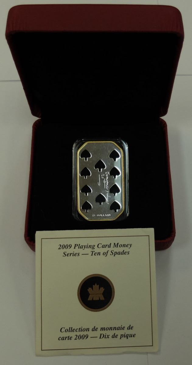CANADA-2009 $15 SILVER PLAYING CARD MONEY-TEN OF SPADES. MISSING SLIP COVER