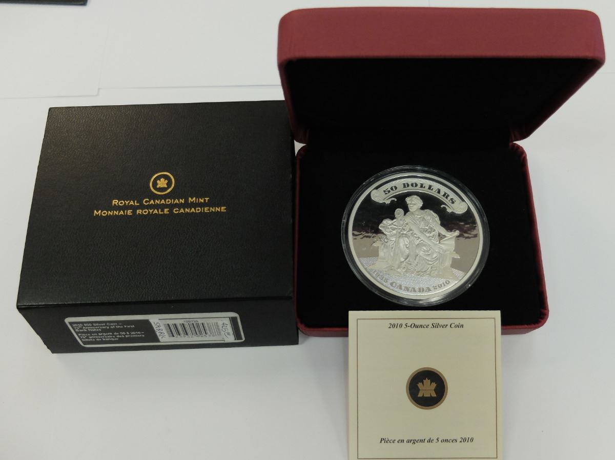CANADA-2010 $50 5 OZ SILVER 75TH ANNIVERSARY OF THE FIRST BANKNOTES