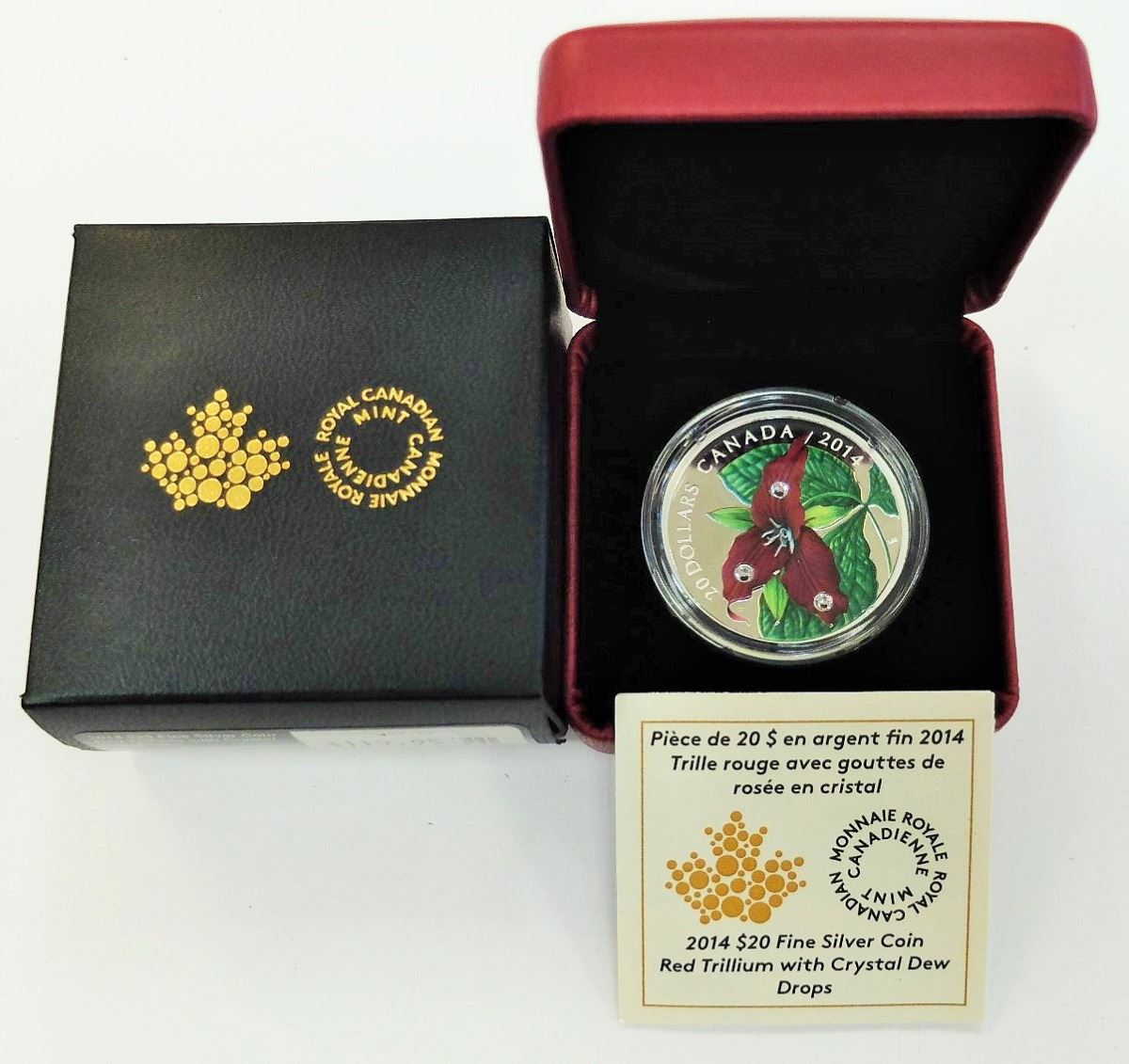 CANADA-2014 $20 SILVER RED TRILLIUM WITH CRYSTALS
