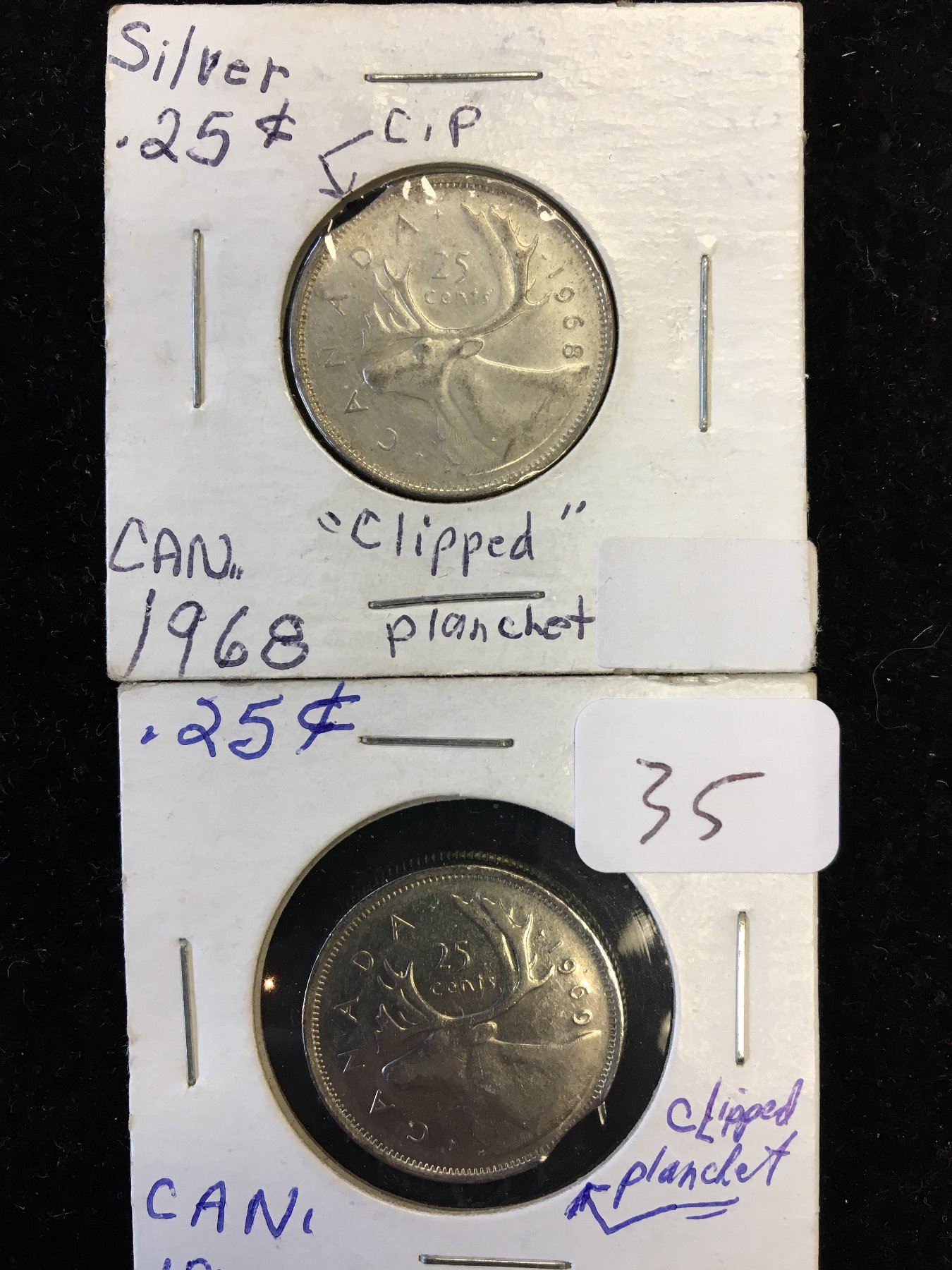 1968 SIVLER AND 1969 25 CENTS BOTH WITH A CLIPPED PLANCHET.