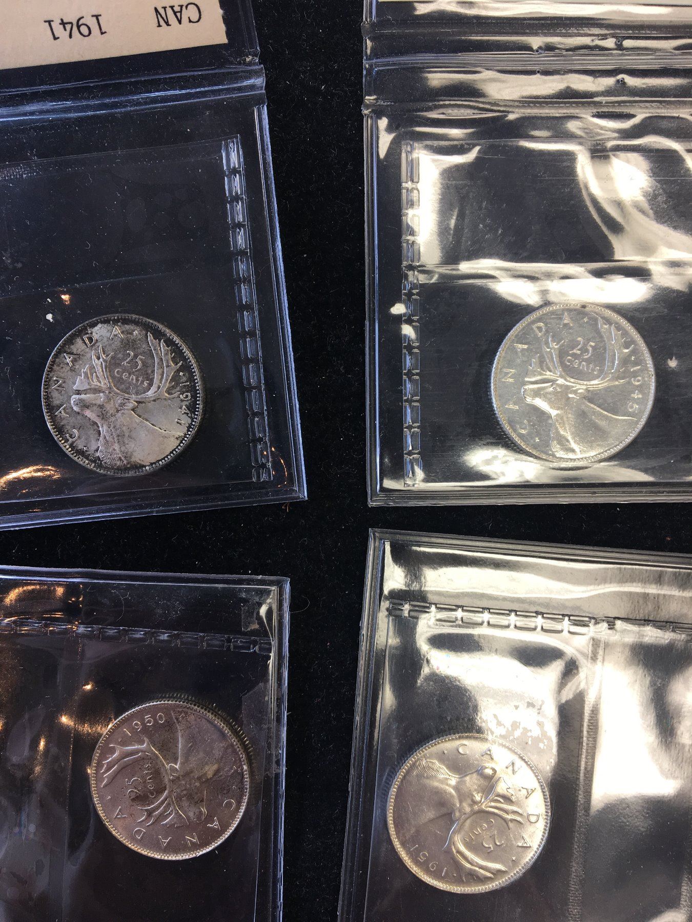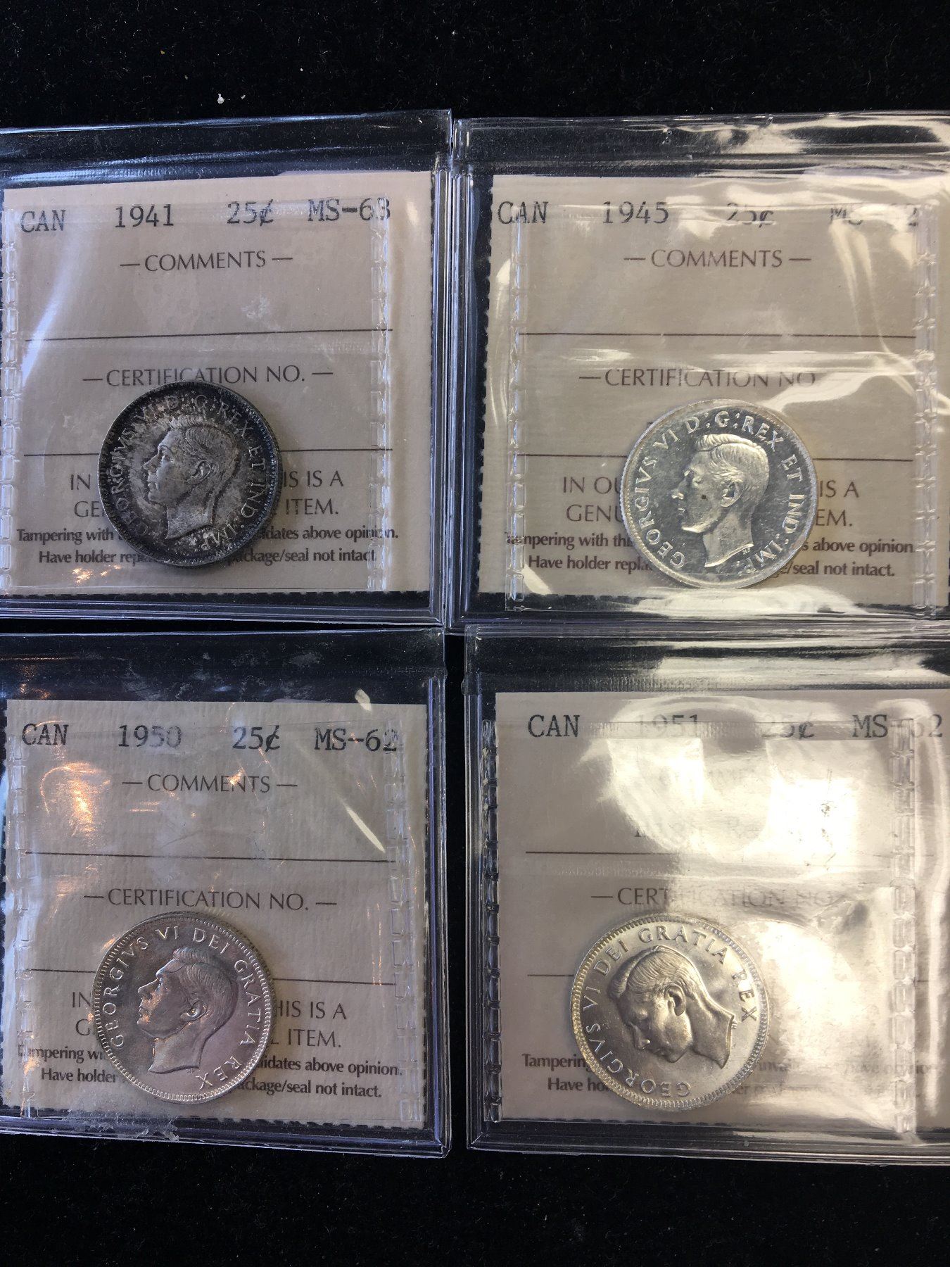 NICE LOT OF 4 GRADED SILVER 25 CENTS!1945,MS-62,1941,MS-63,1950,MS-62,1951(HIGH RELIEF) MS-63