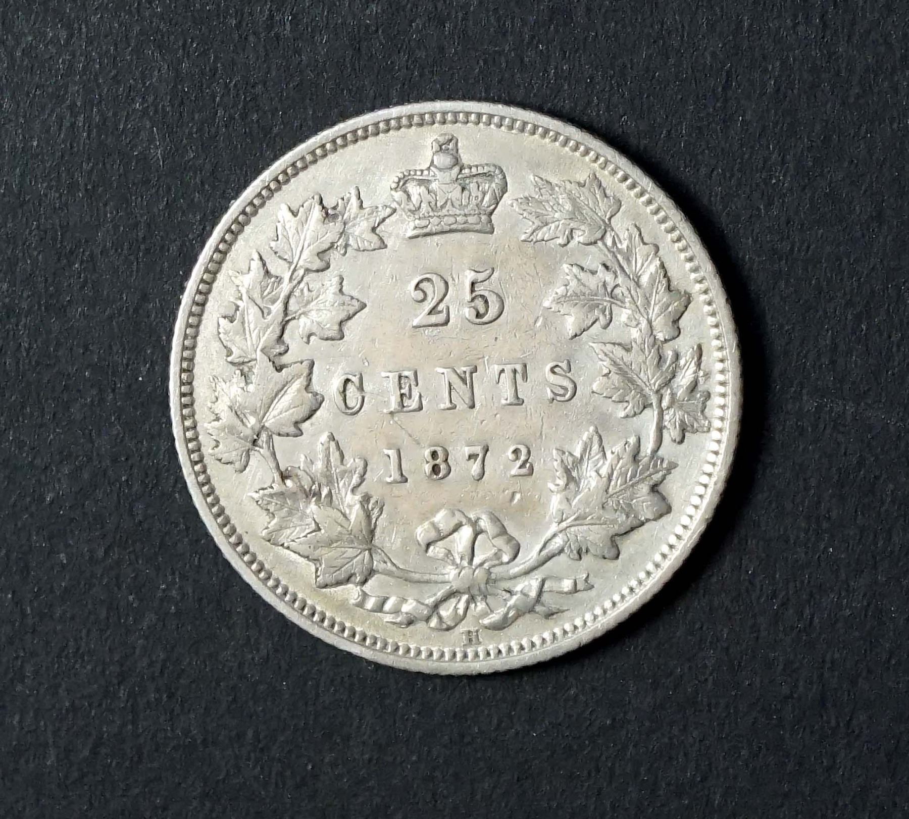 CANADA 25 Cents 1872H Small 2, Obverse 2 25 Cents w/Die Breaks Very Fine