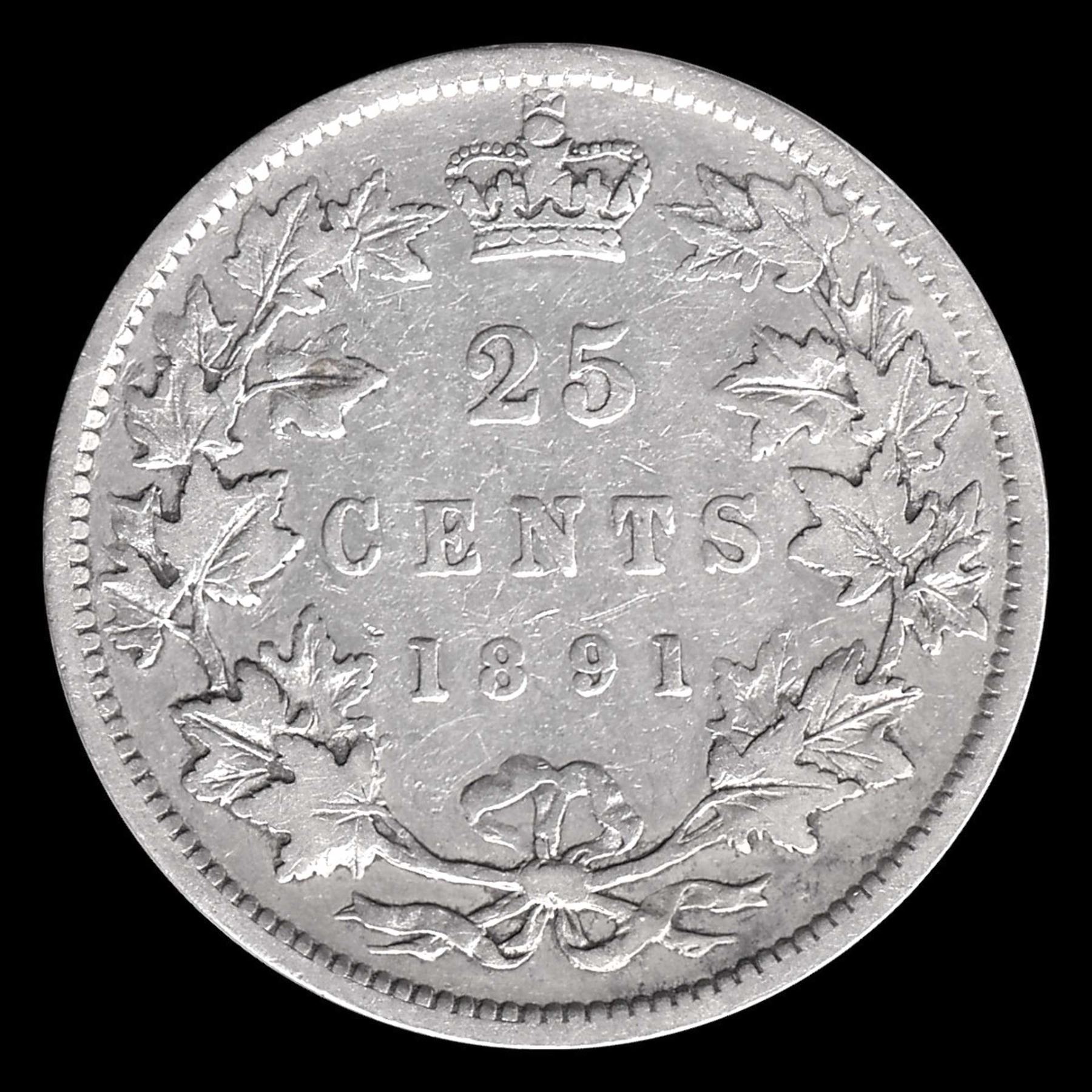 CANADA 25 Cents 1891 Obv.5 Victoria Fine