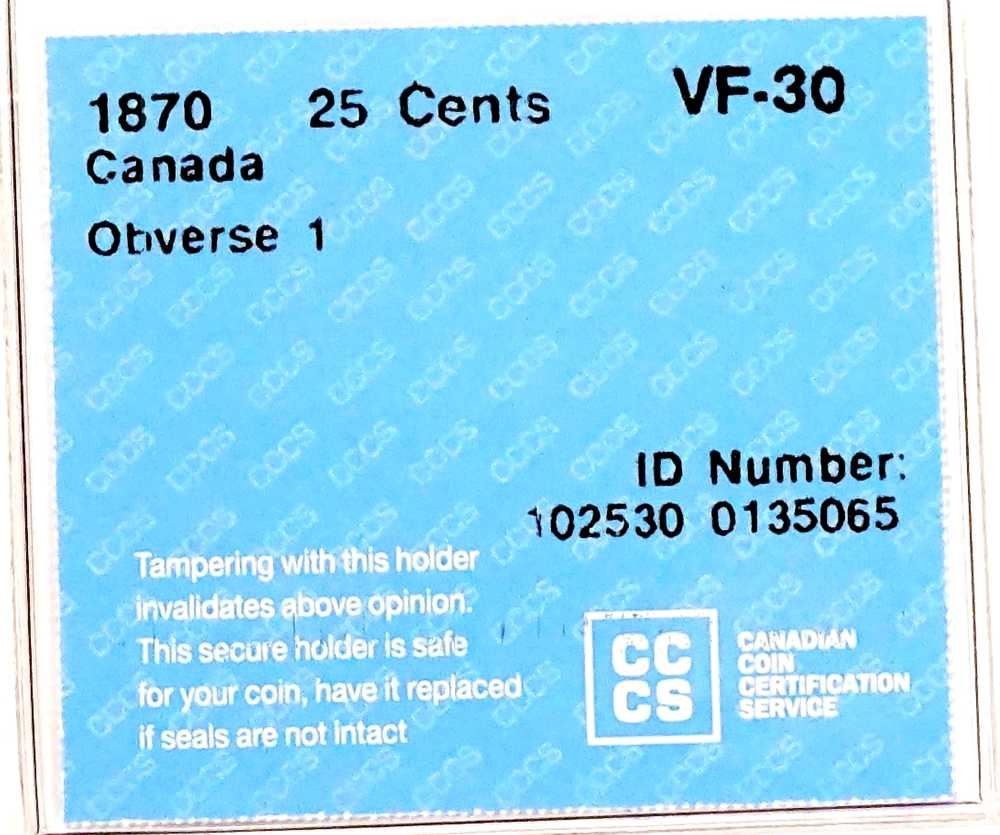 CANADA - 25 cents 1870 obverse 1 CCCS VF-30