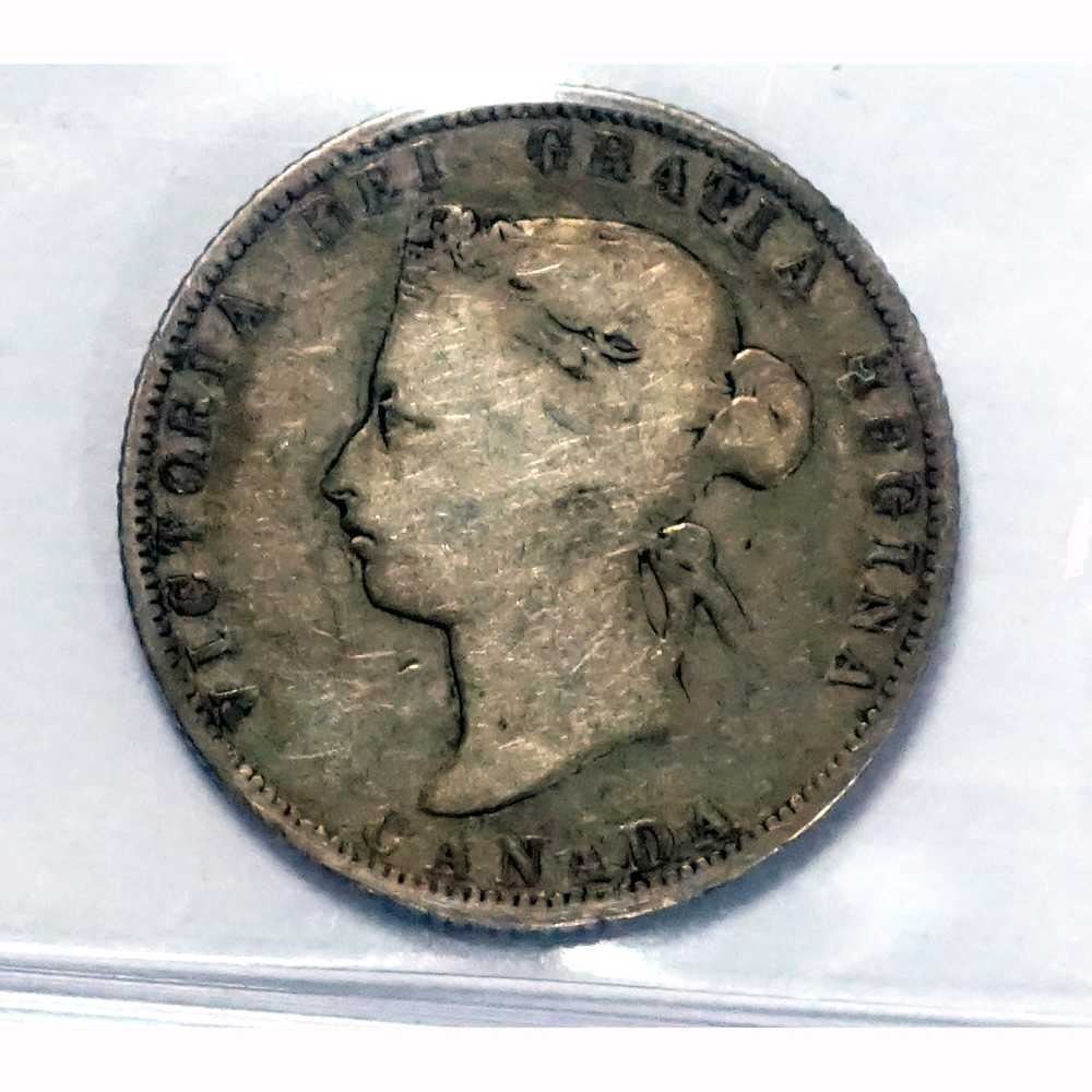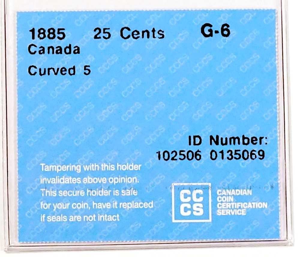 CANADA - 25 cents 1885 curved 5 CCCS G-6