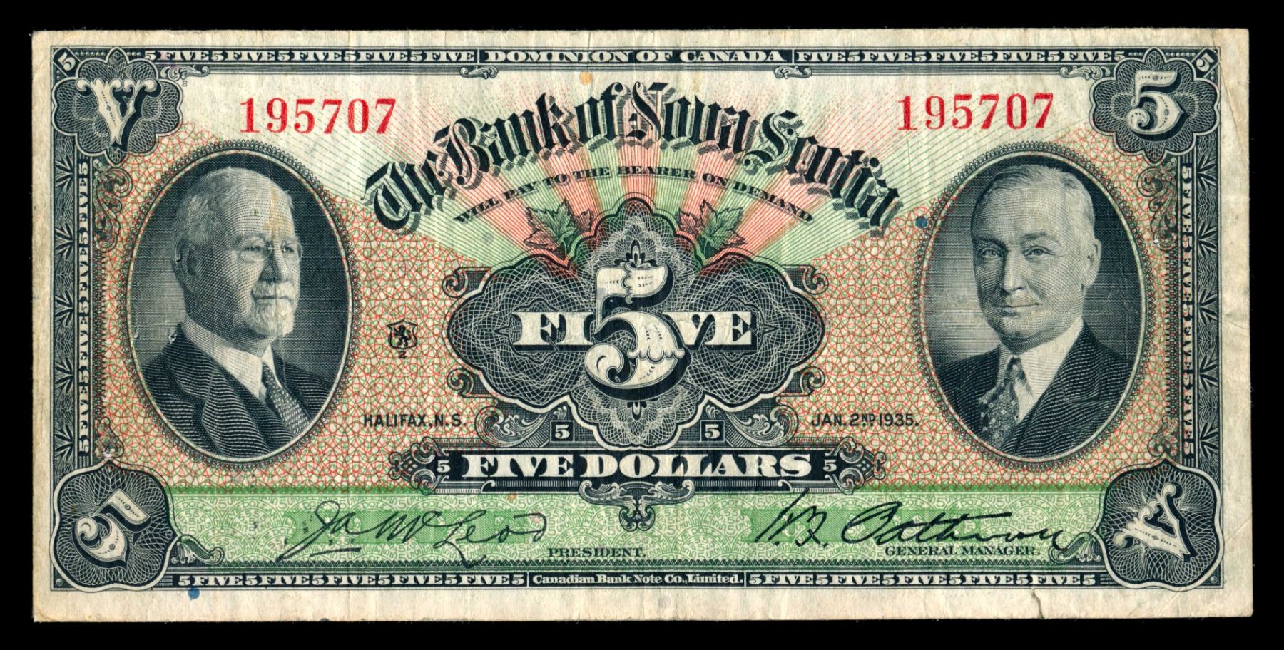 CANADA $5.00 1935 Bank of Nova Scotia Fine