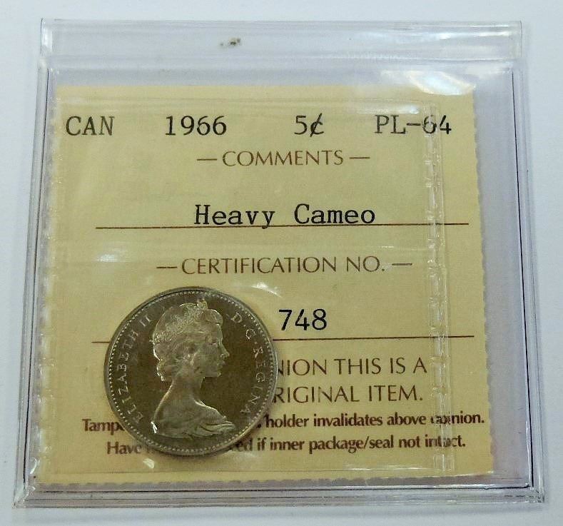 CANADA-5 CENT, 1966 ICCS PL64 HEAVY CAMEO