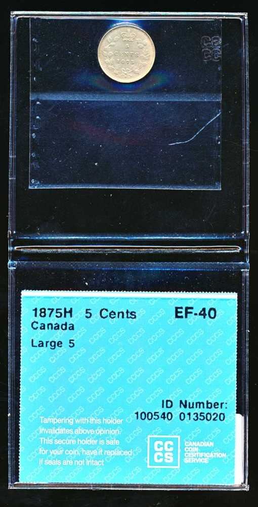 CANADA - 5 cents 1875-H large 5 CCCS EF-40