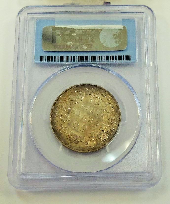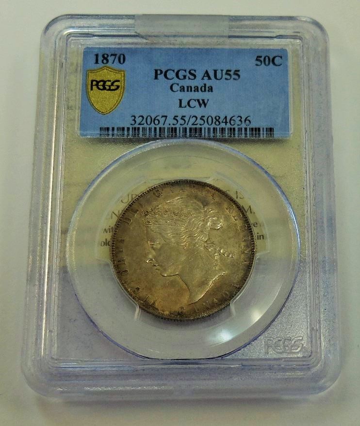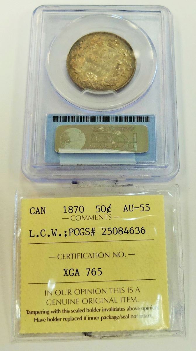CANADA-50 CENT, 1870 LCW, CROSS GRADED, ICCS & PCGS AU55