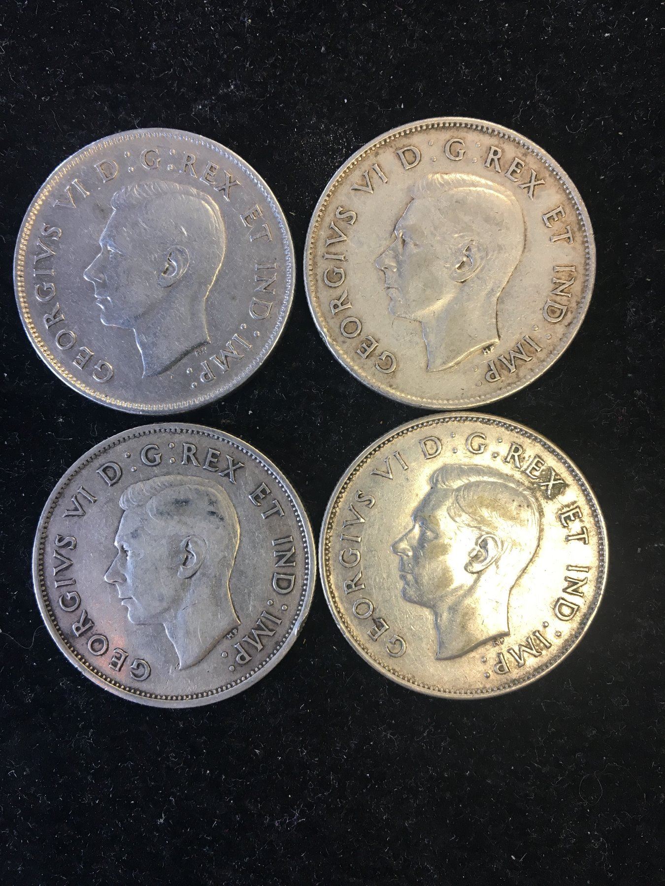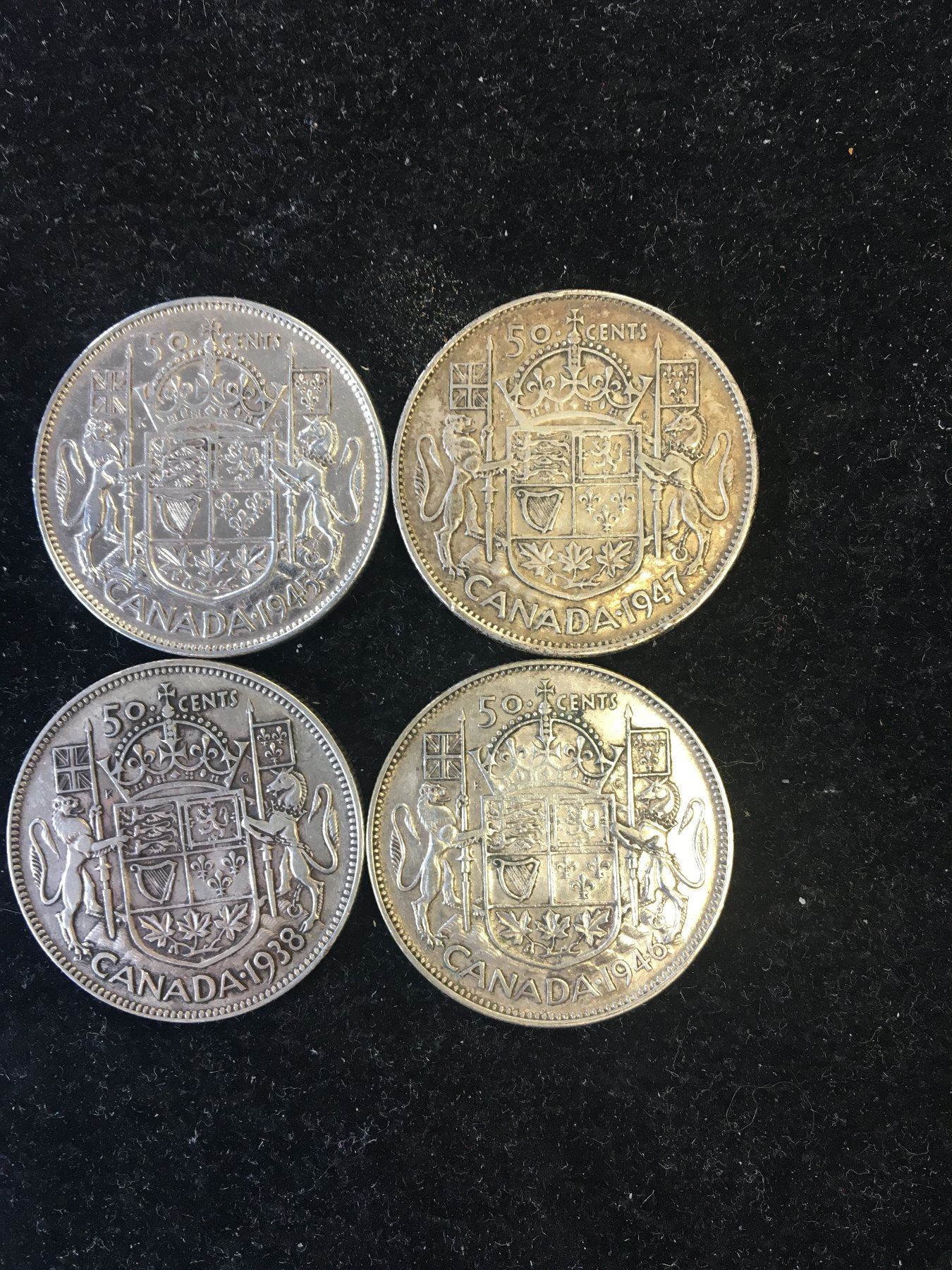 NICE LOT OF 4 SILVER 50 CENTS!1938,1945,1946 AND 1947.F-VF
