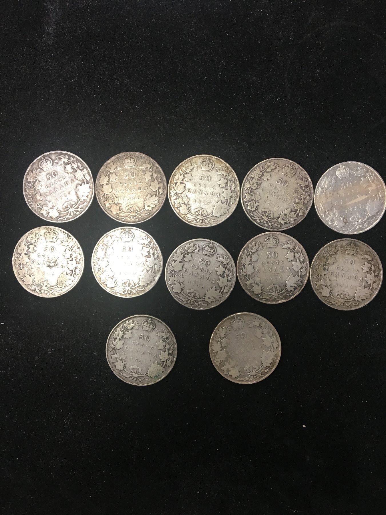 NICE LOT OF 12 SILVER 50 CENTS! 1910,1916,3X1917,3X1918,3X1919.AVERAGE VG