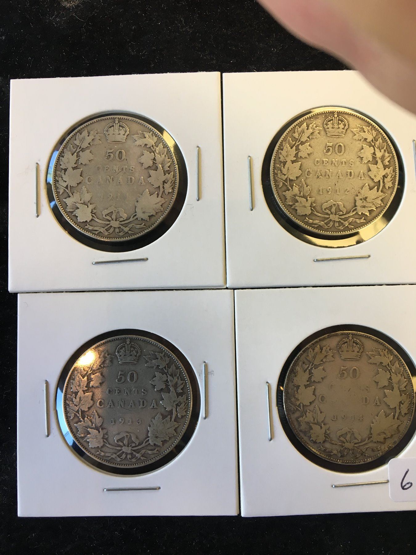 NICE LOT OF 4 CANADA 50 CENTS! 1911,12,13,14 GRADES ABOUT VG-8