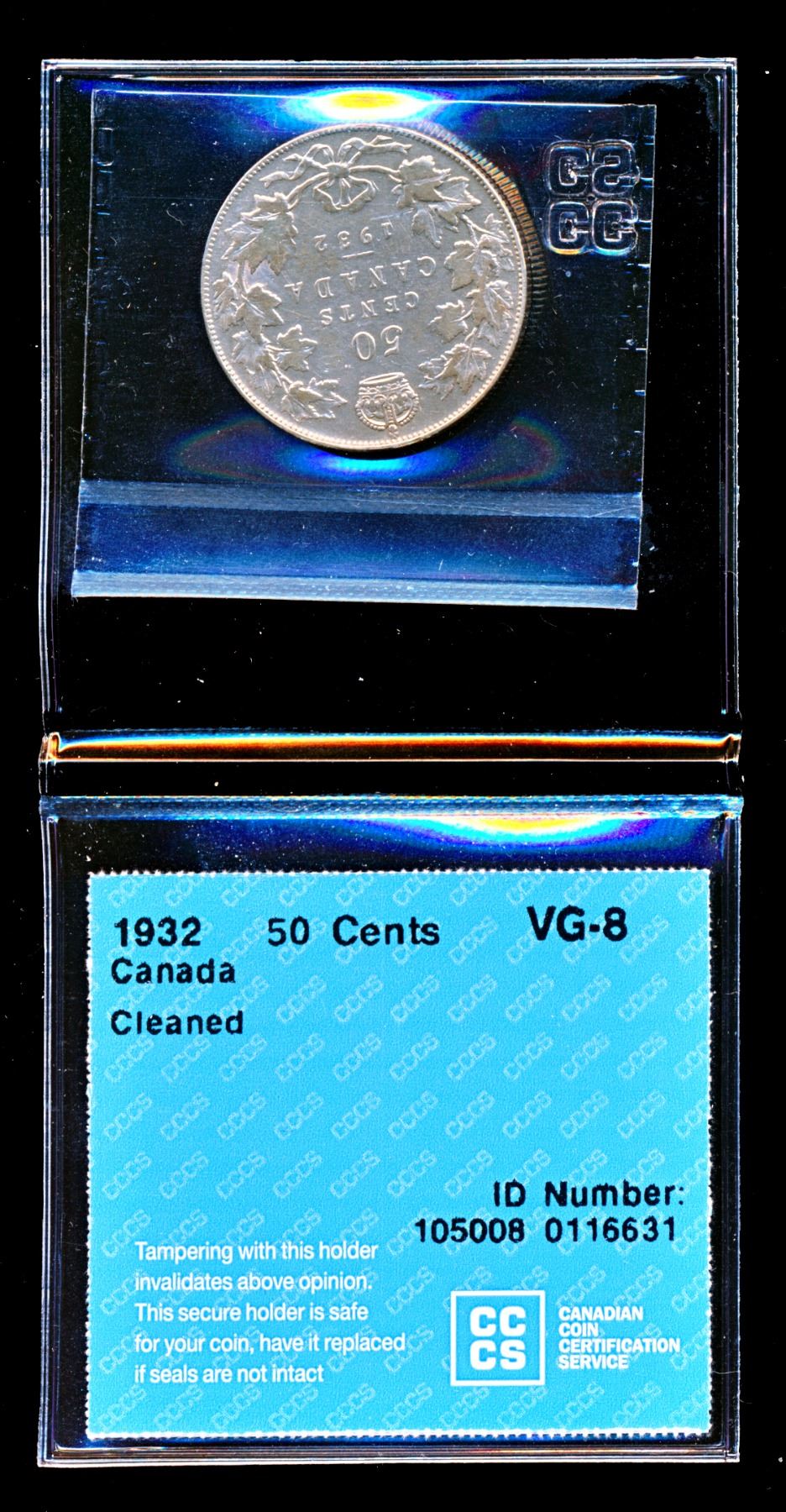 CCCS # 105008 0116631 Key date of the series, listed Cleaned on the certificate but the Obverse has an imbedded discolouration and lustre through much of the legend, the Reverse is in much better condition than the grade marked. Should be viewed.