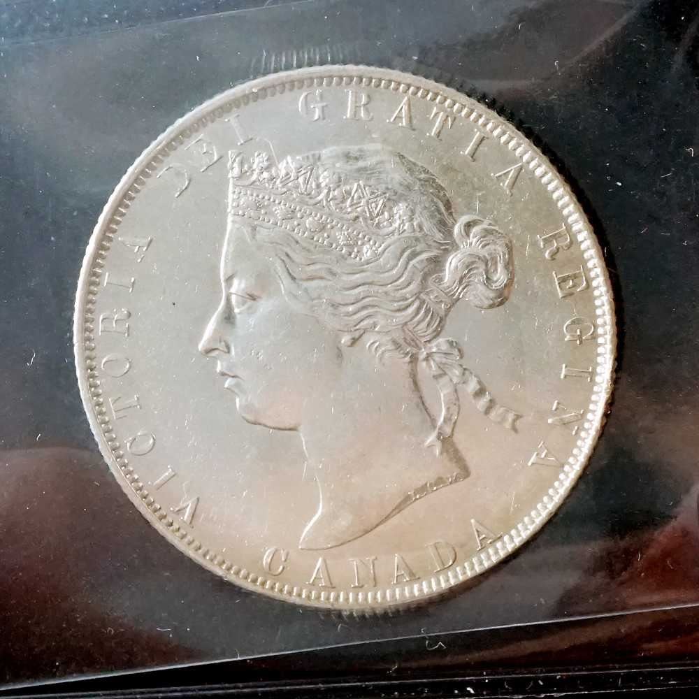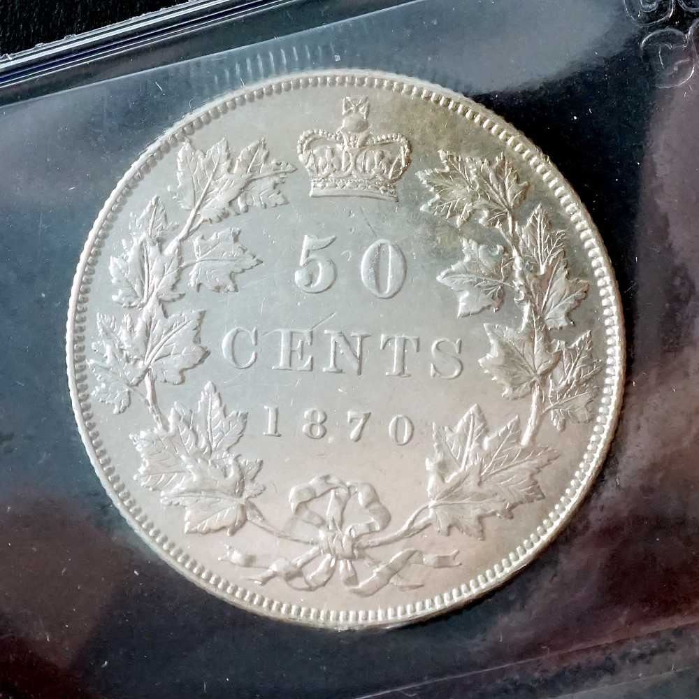 Beau grade pour cette premiere 50 cents du Canada. Quelques rayures sur l'avers autour de la valeur faciale.