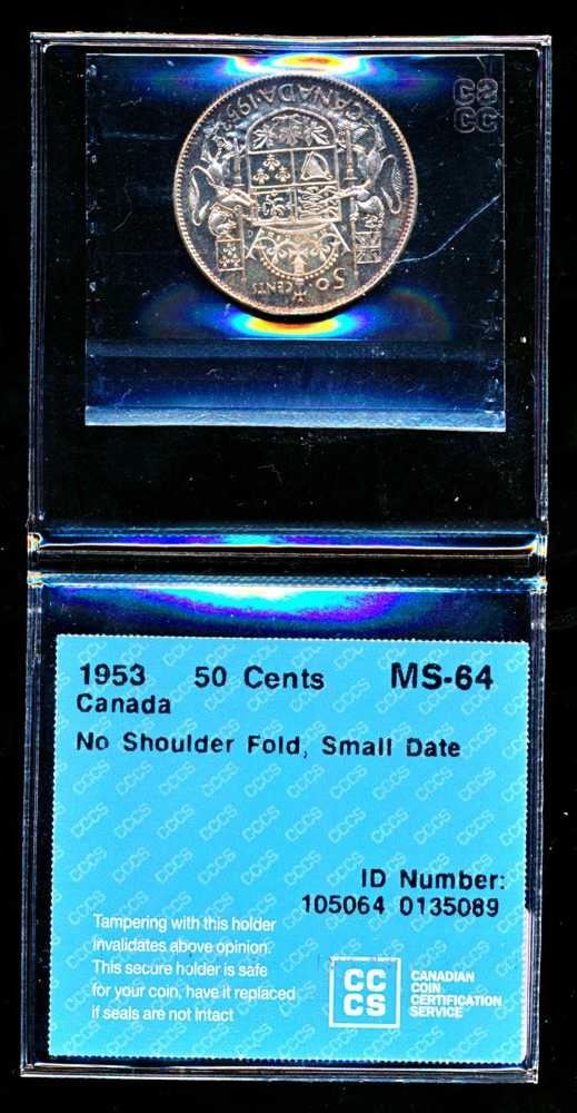 CANADA - 50 cents 1953 No Shoulder Fold Small date CCCS MS-64