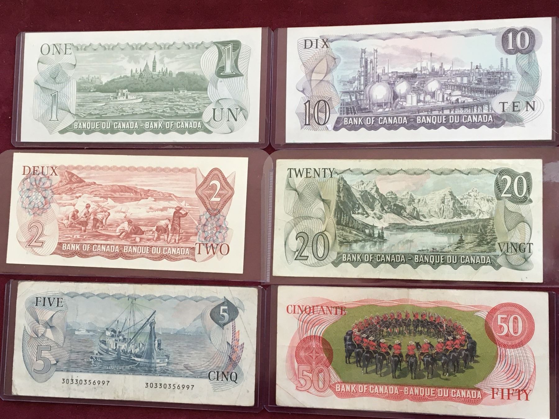 CANADA BANKNOTES DENOMINATIONS $1 $2 $5 $10 $20 $50 VARIOUS YEARS