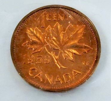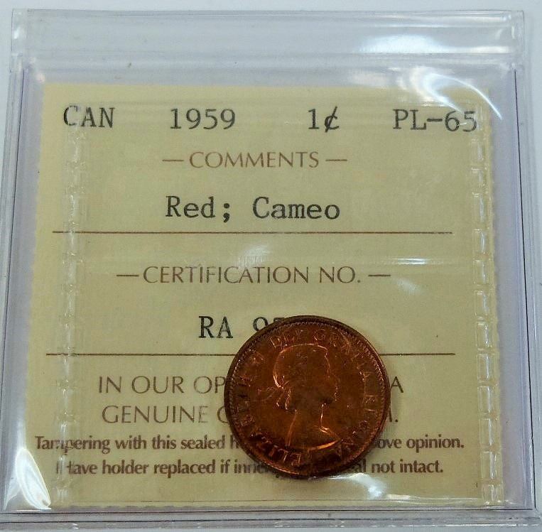 CANADA-CENT 1959. ICCS PL65 RED, CAMEO
