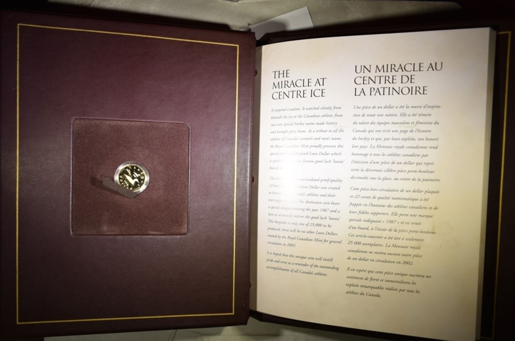 GOLD PLATED LOON DOLLAR, FOUR COMMEMORATIVE  STAMPS & 2 EDITIONS OF MACLEAN'S MAGAZINE.    ESTIMATE $55 - $75.