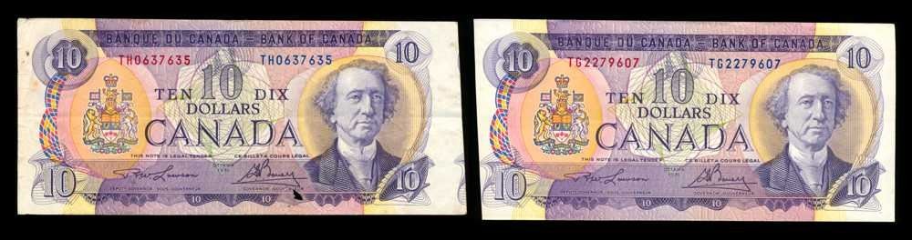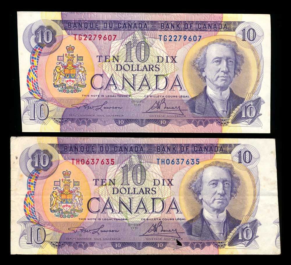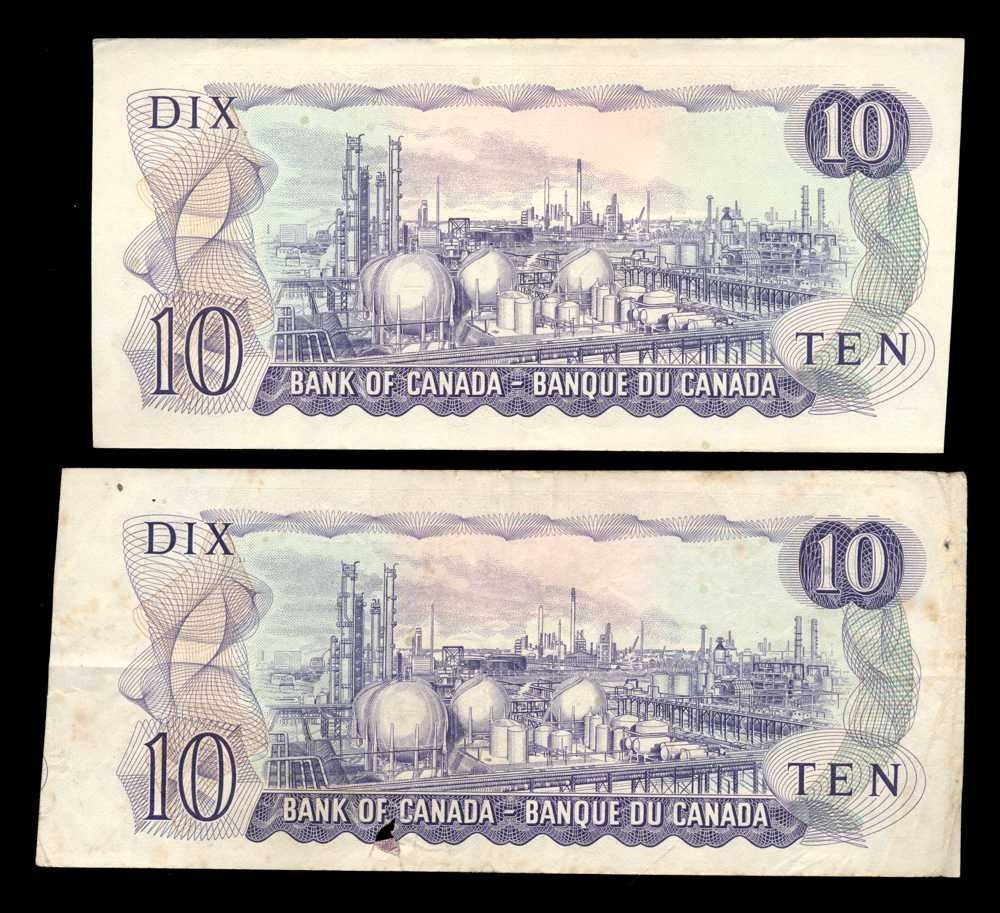 CANADA - Lot de 2 x $10 1971 mal dEcoupE