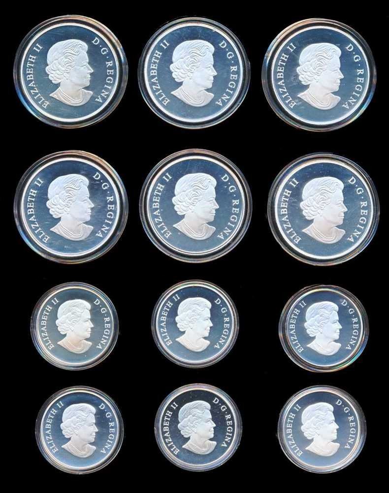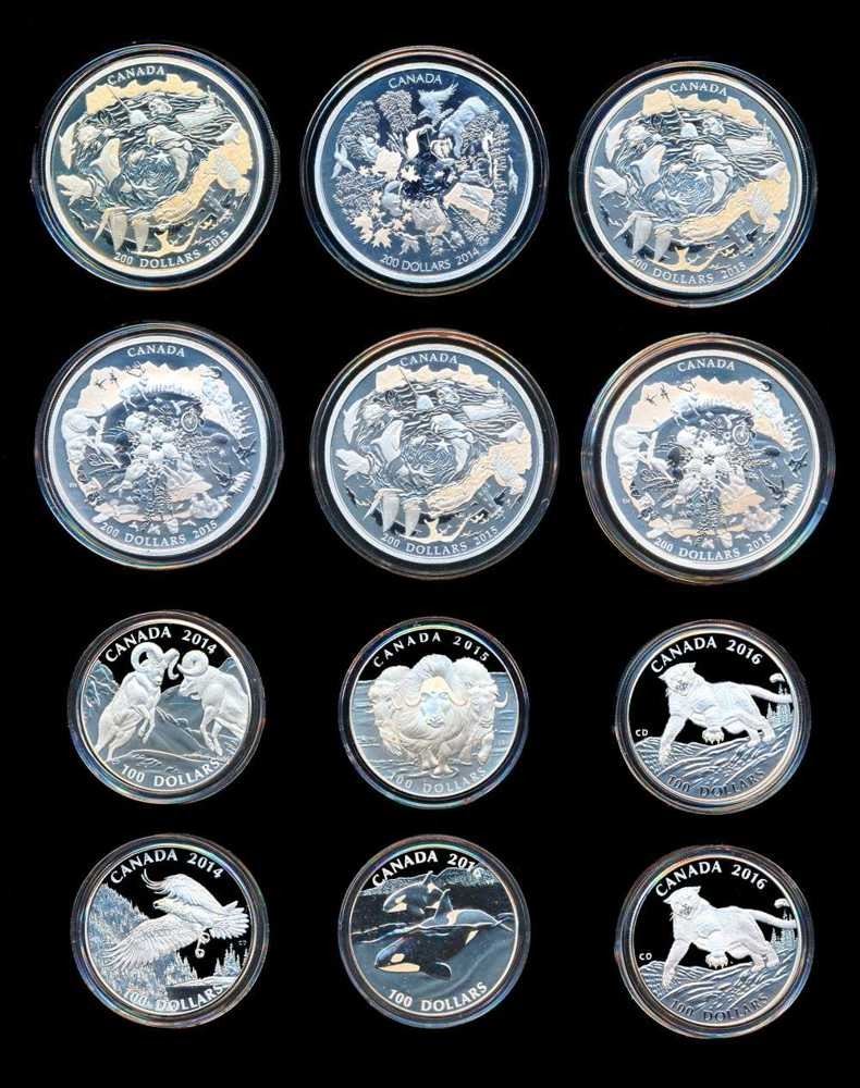 CANADA - Lot de 6 x $200 et 6 x $100 en argent