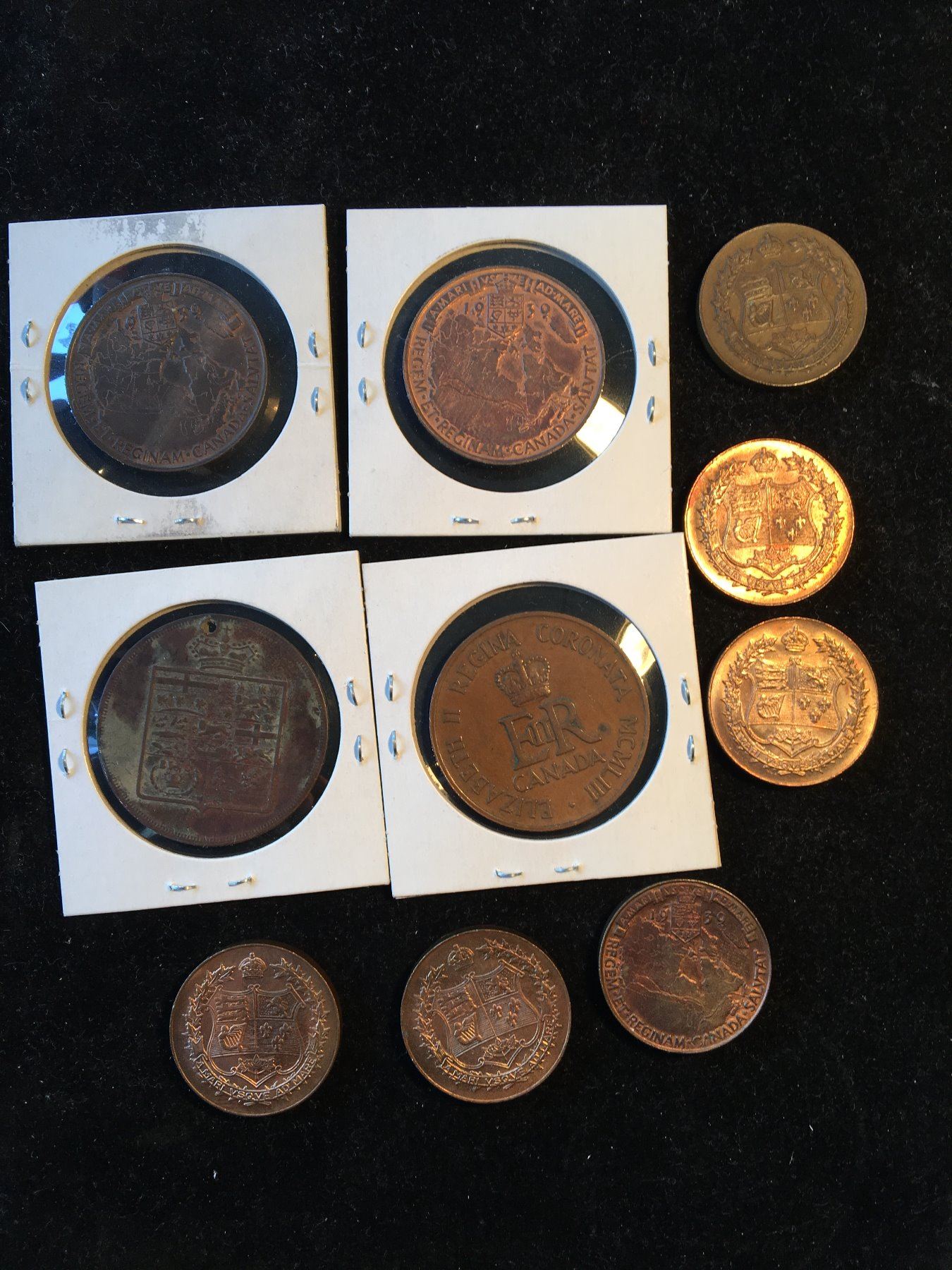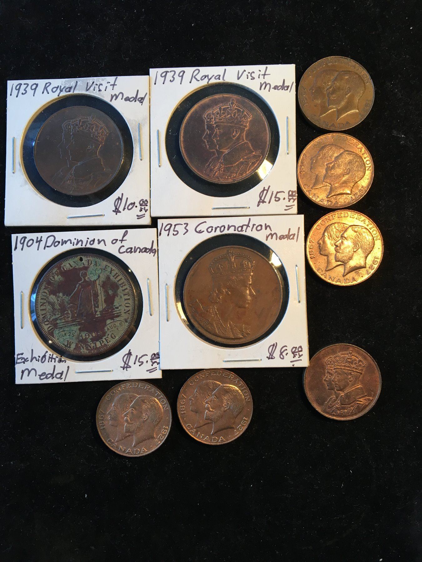 2 X 1939 ROYAL VISIT MEDALLION,1953 ELIZABETH II CORONATION MEDAL,1904 DOMINION OF CANADA EXHIBITION MEDAL.WINNIPEG AND 6X ROYAL VISIT 1867-1927 MEDALLIONS.NICE LOT!
