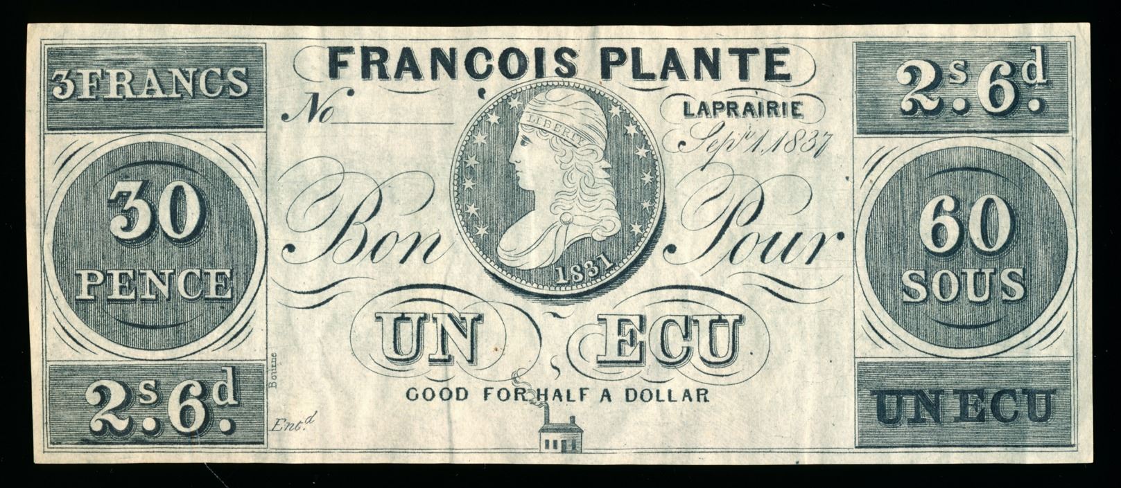 CANADA - Merchant Script 30 pence / 60 sous Laprairie 1837