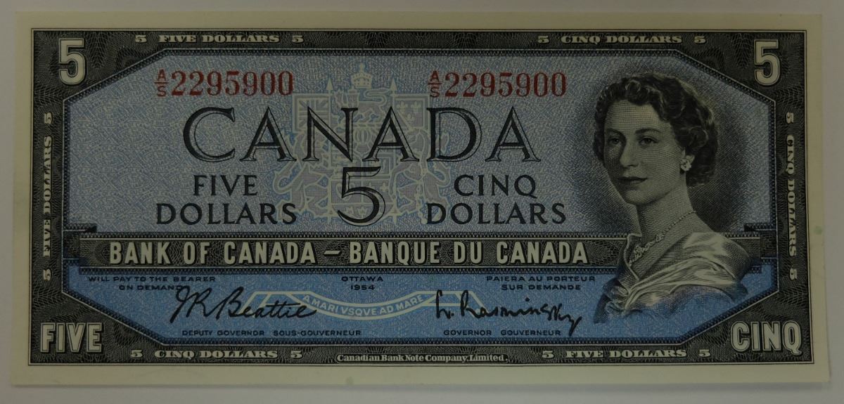 CANADA PAPER-1954 $5 BEATTIE/RAS CHOICE UNC