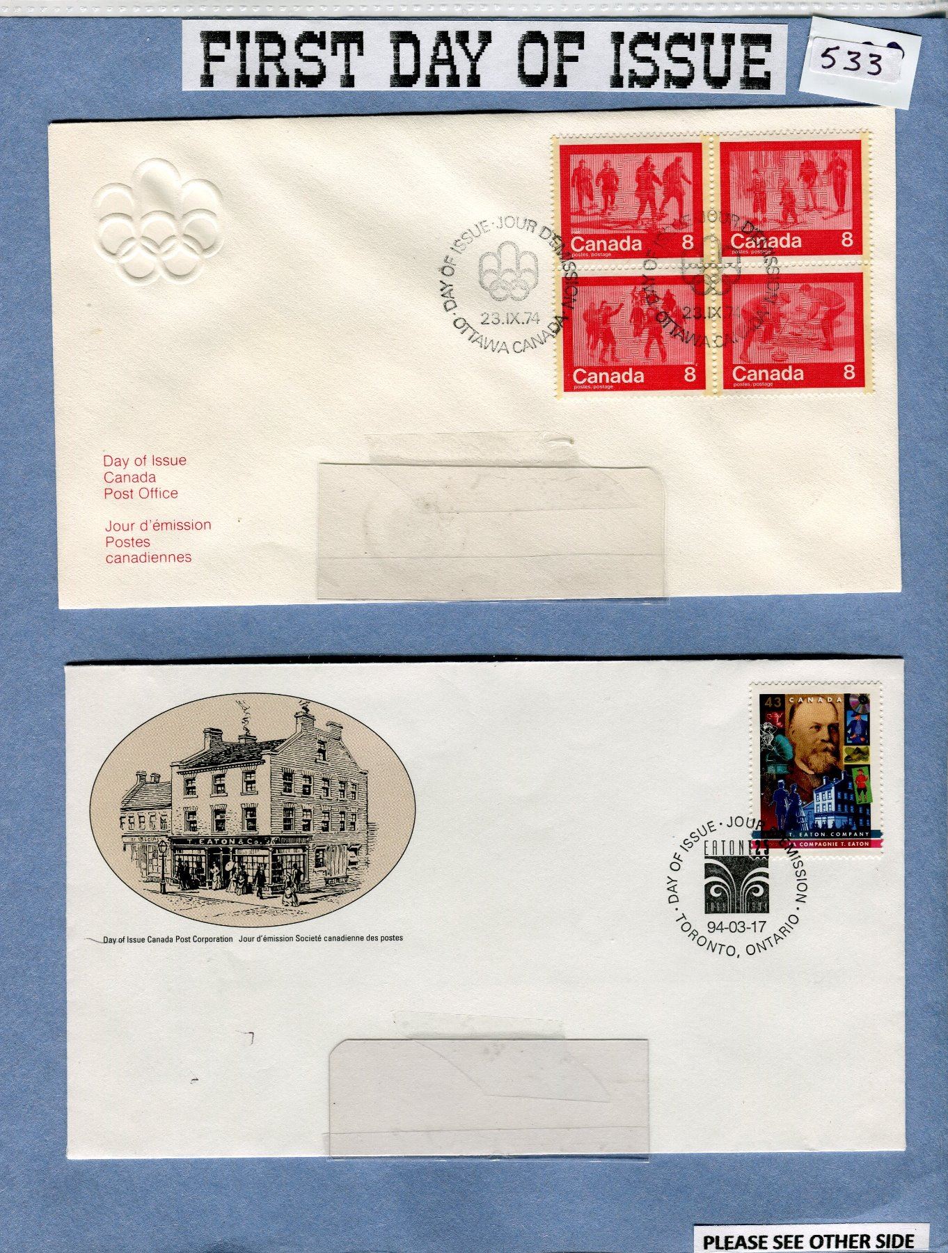 CANADA POST LOT (4 DIFFERENT FIRST DAY OF ISSUE ENVELOPES, HISTORIC STAMPS)