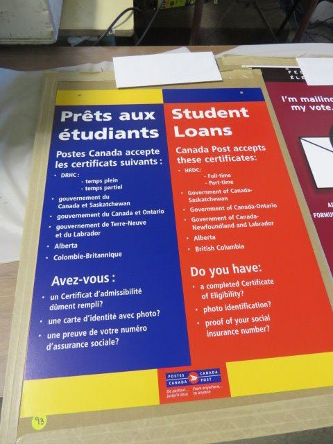 CANADA POST POSTER (STUDENT LOANS) *18" X 24"* ( 2 SIDED) *W/HANGER WIRE*
