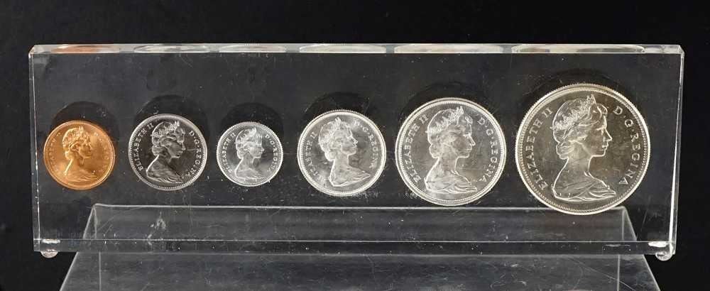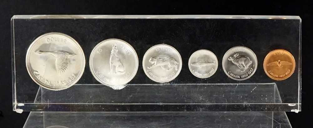 CANADA - Set de 6 monnaies 1967 dans un bloc d'acrylique