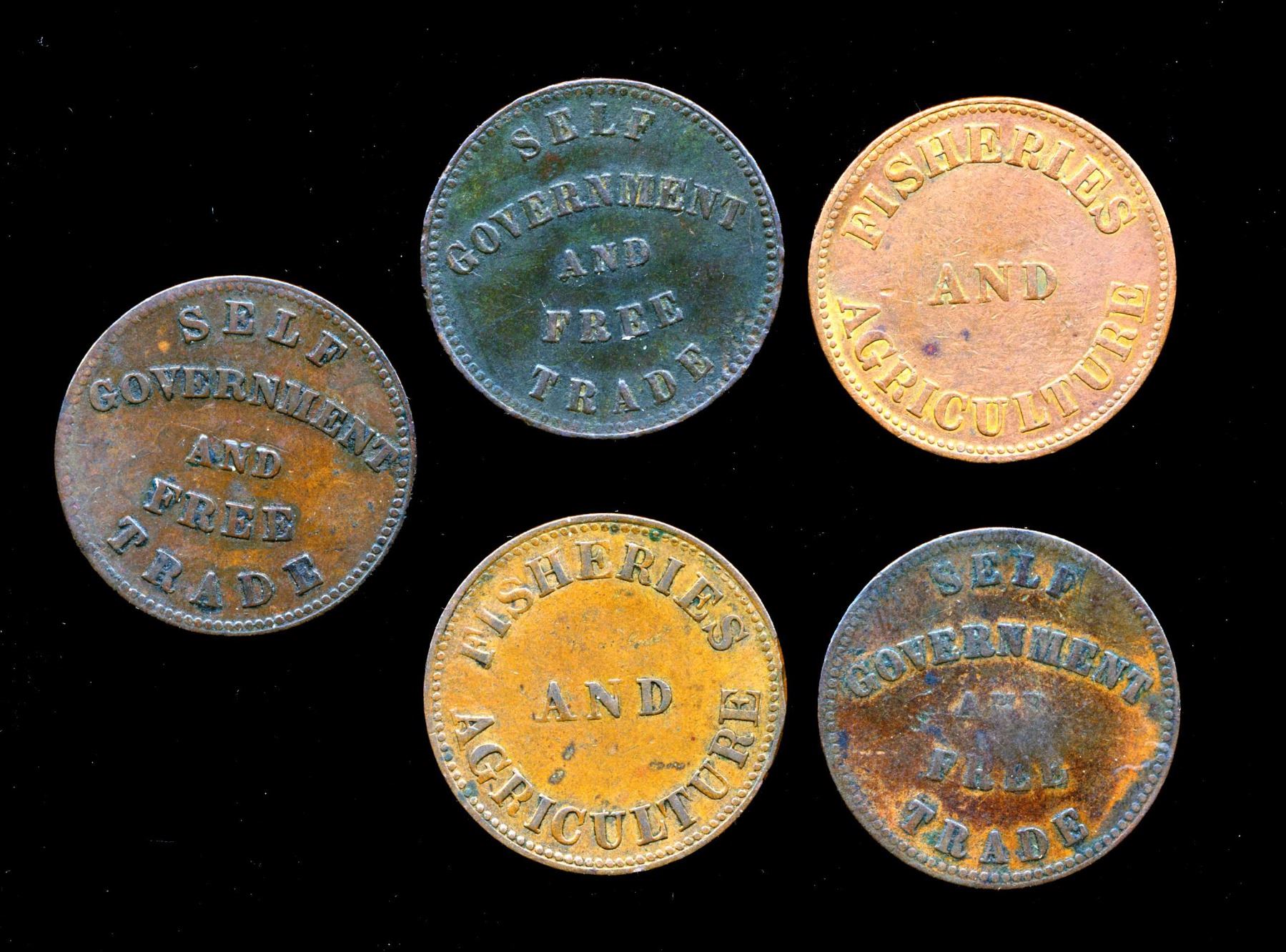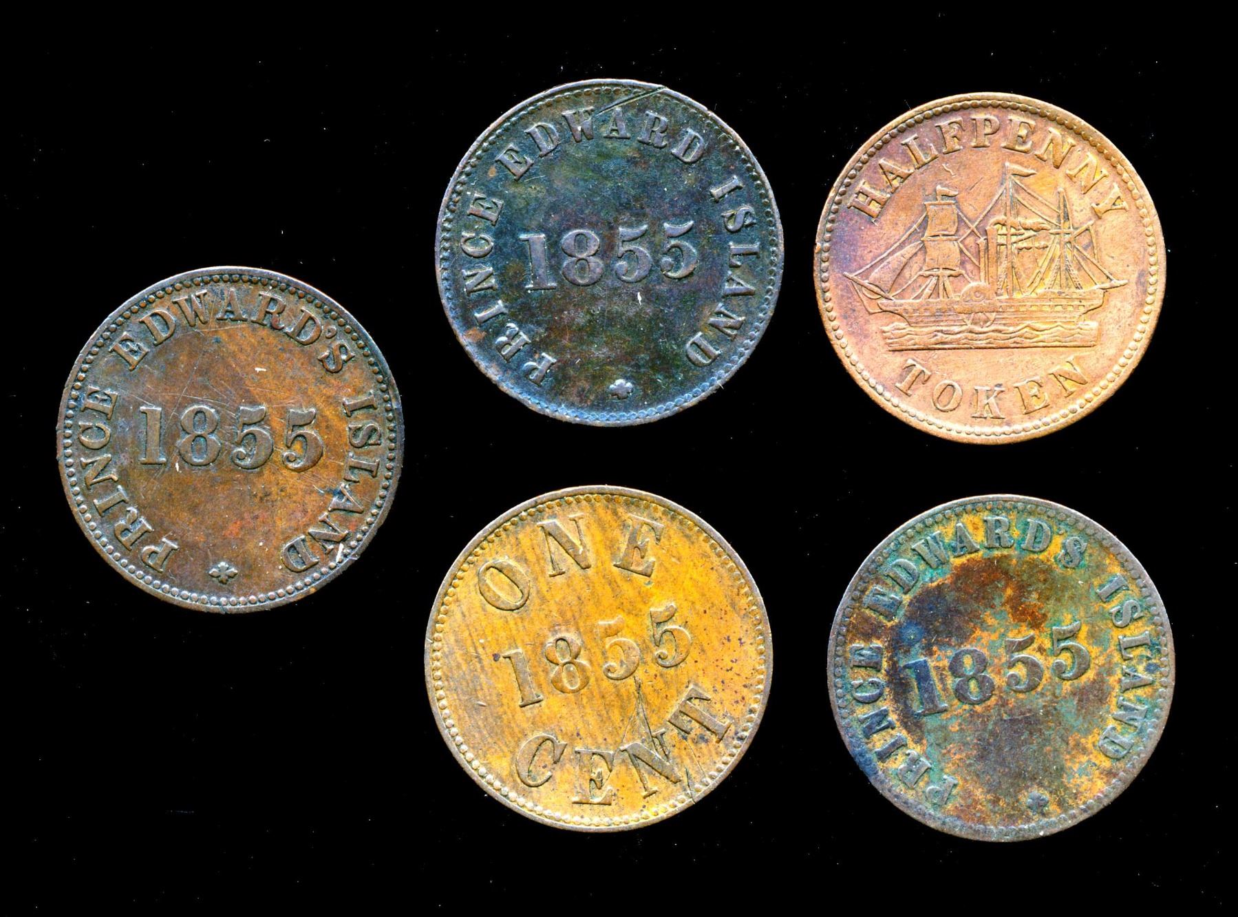 CANADA TOKENS 1855. A Lot of 5 PEI Tokens, Fine-Very Fine
