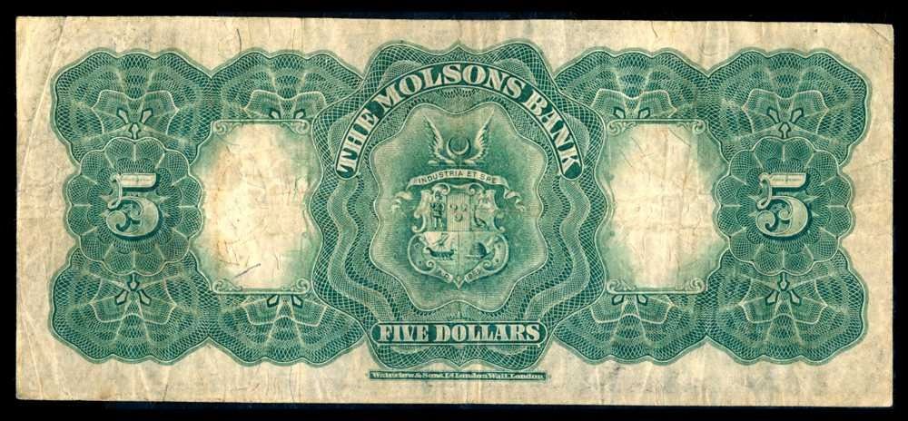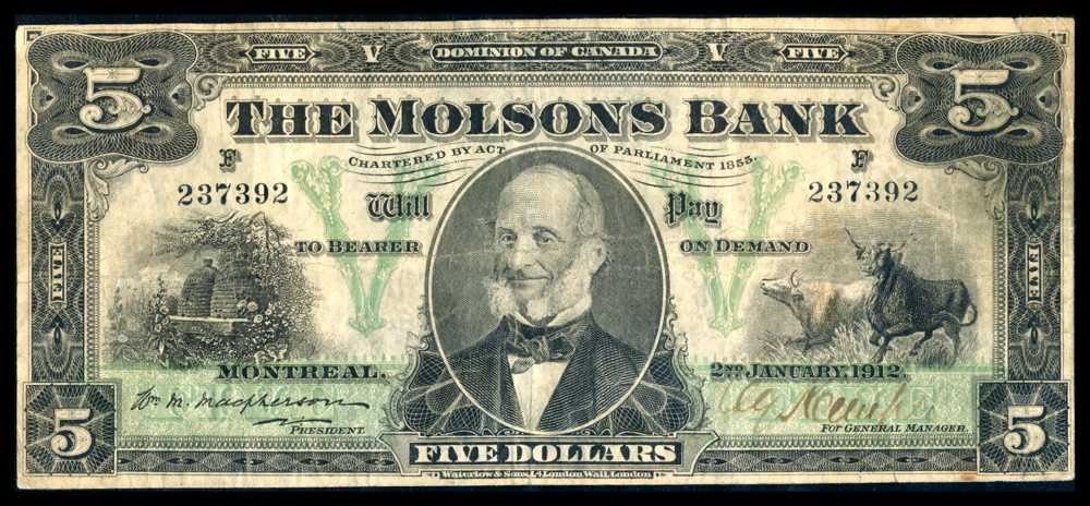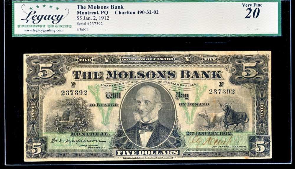 CANADA - The Molsons Bank $5 1912 - Legacy VF-20