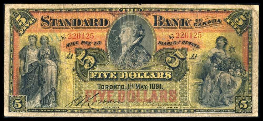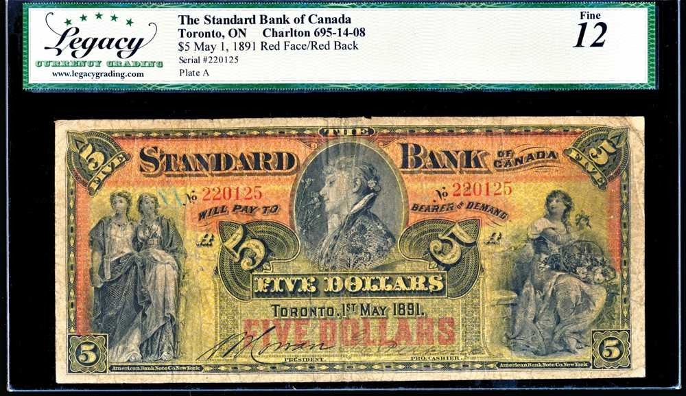 CANADA - The Standard Bank of Canada $5 1891 Red face Legacy F-12