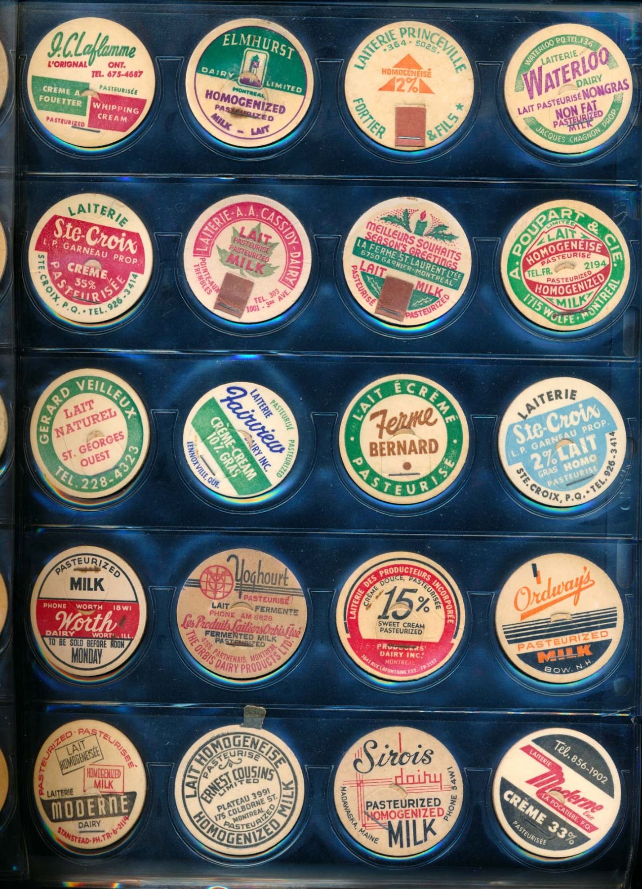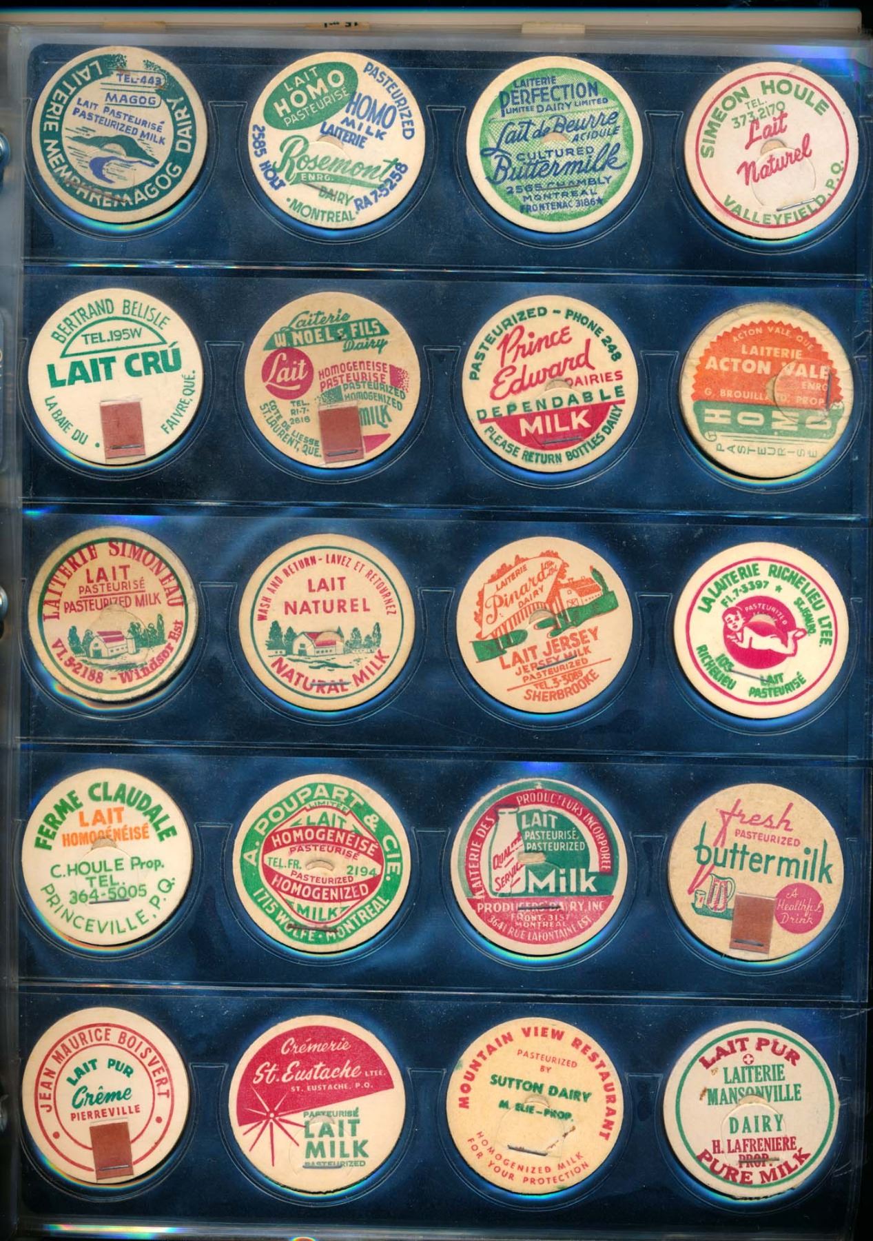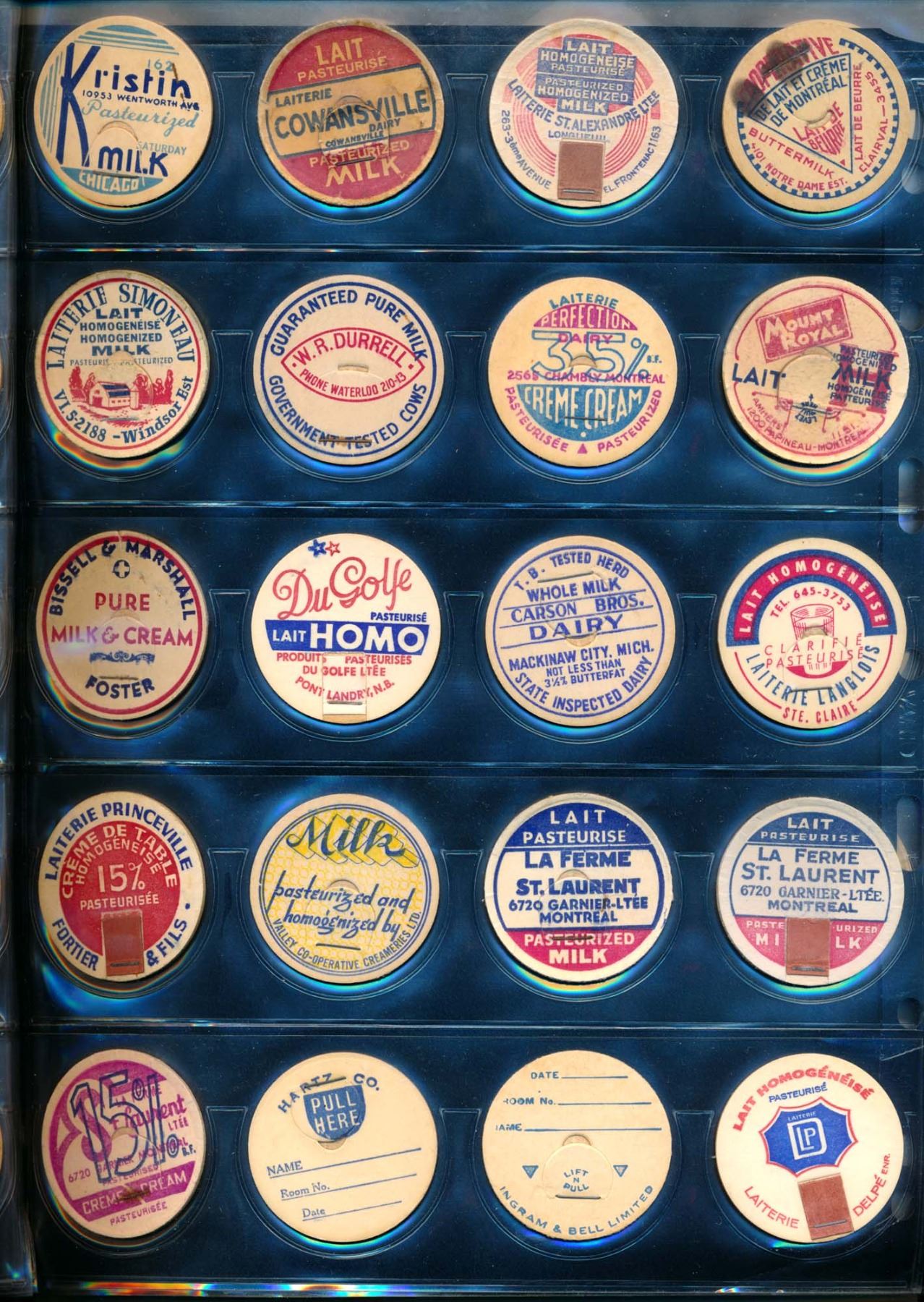 CANADA /USA. Collection of 188 Milk Caps in a Binder