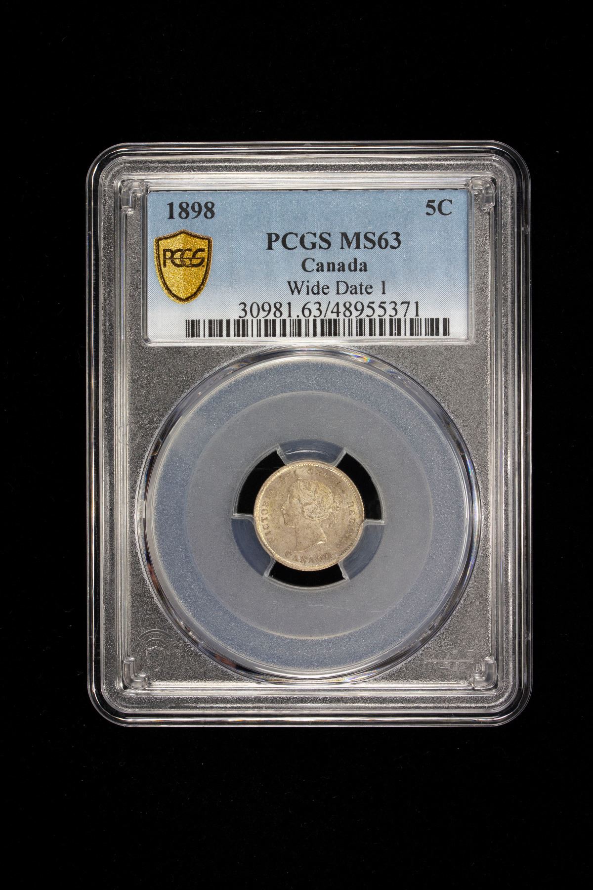 CANADA: Victoria, 1837-1901, AR 5 cents, 1898, KM-2, variety with wide numeral 1, attractive luster with light tone, PCGS graded MS63.