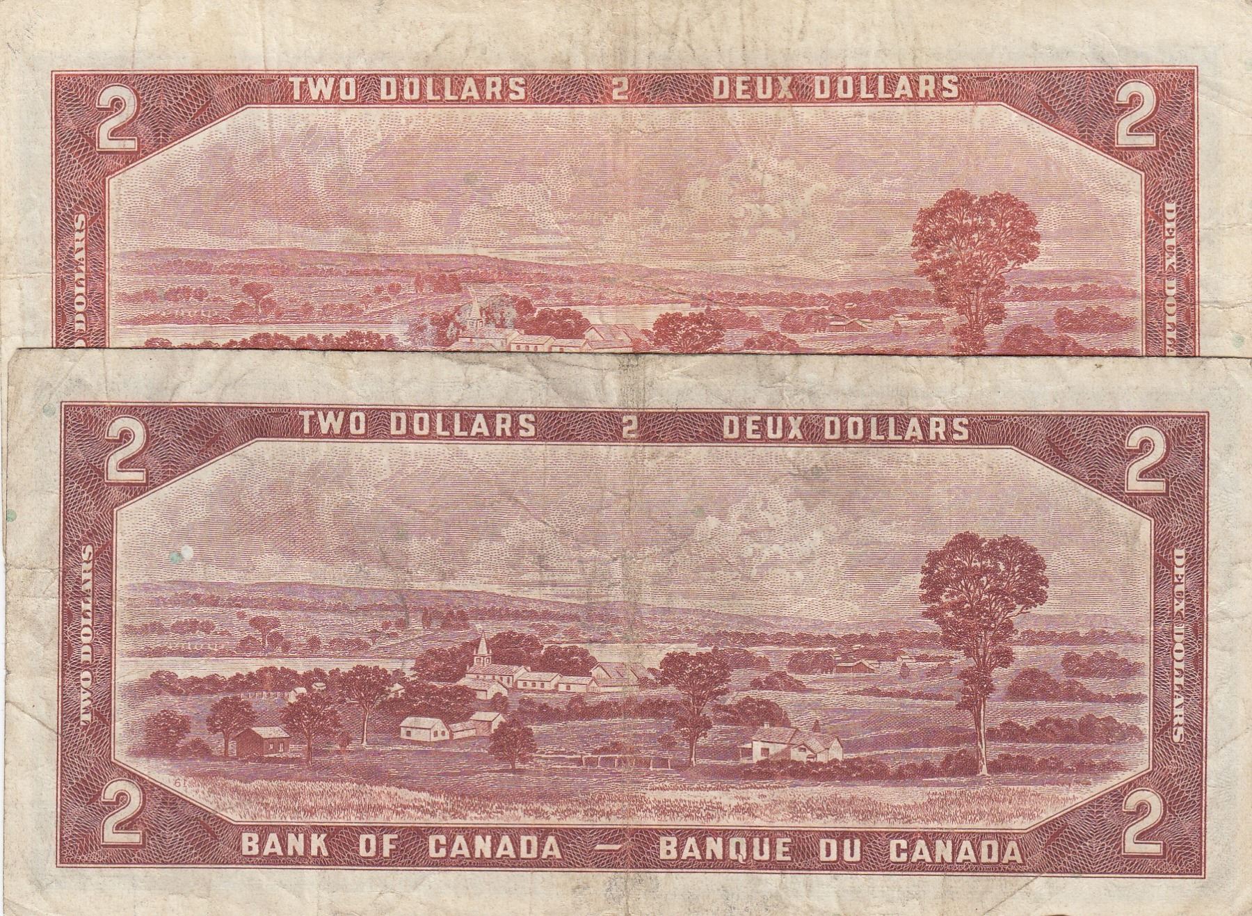 Canada, 2 Dollars, 1954, VF/ FINE, p76a, (Total 2 Banknotes)
