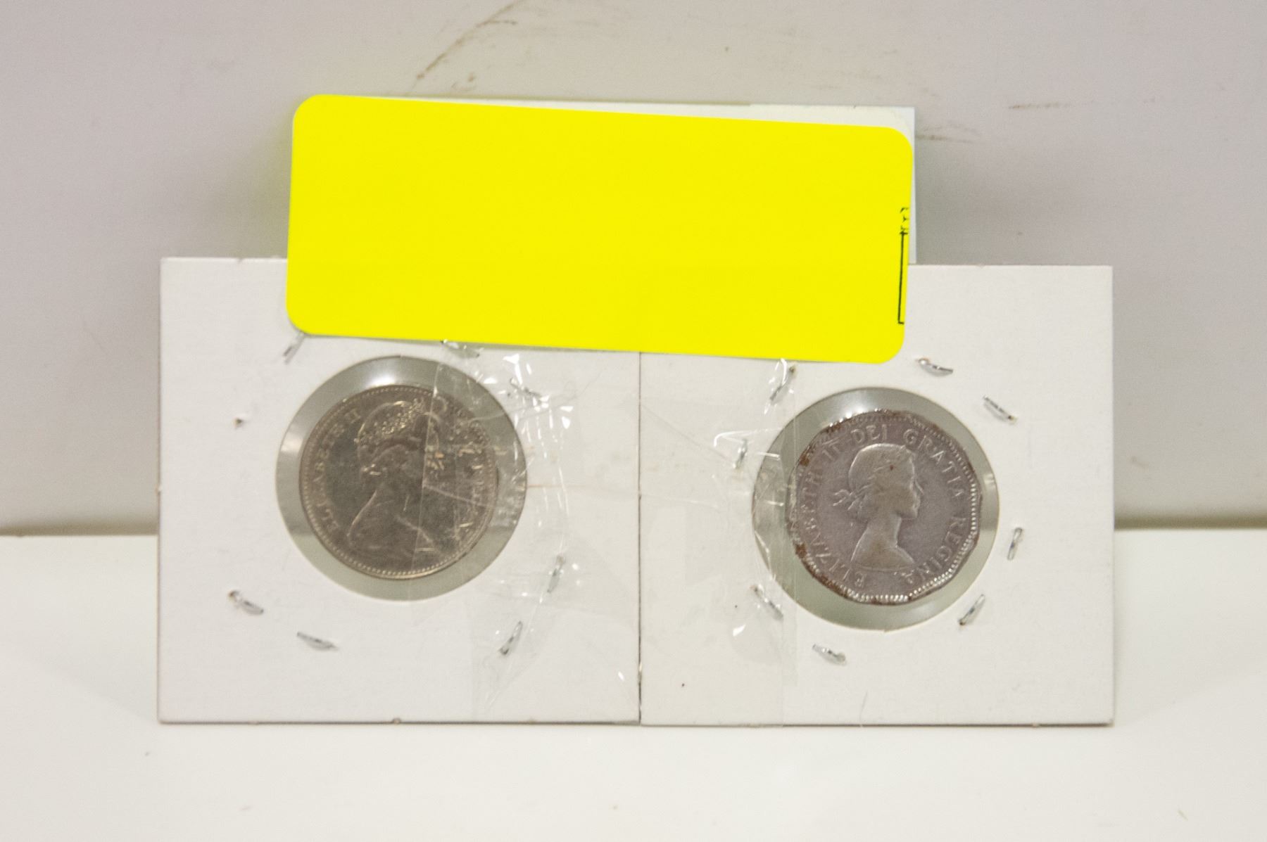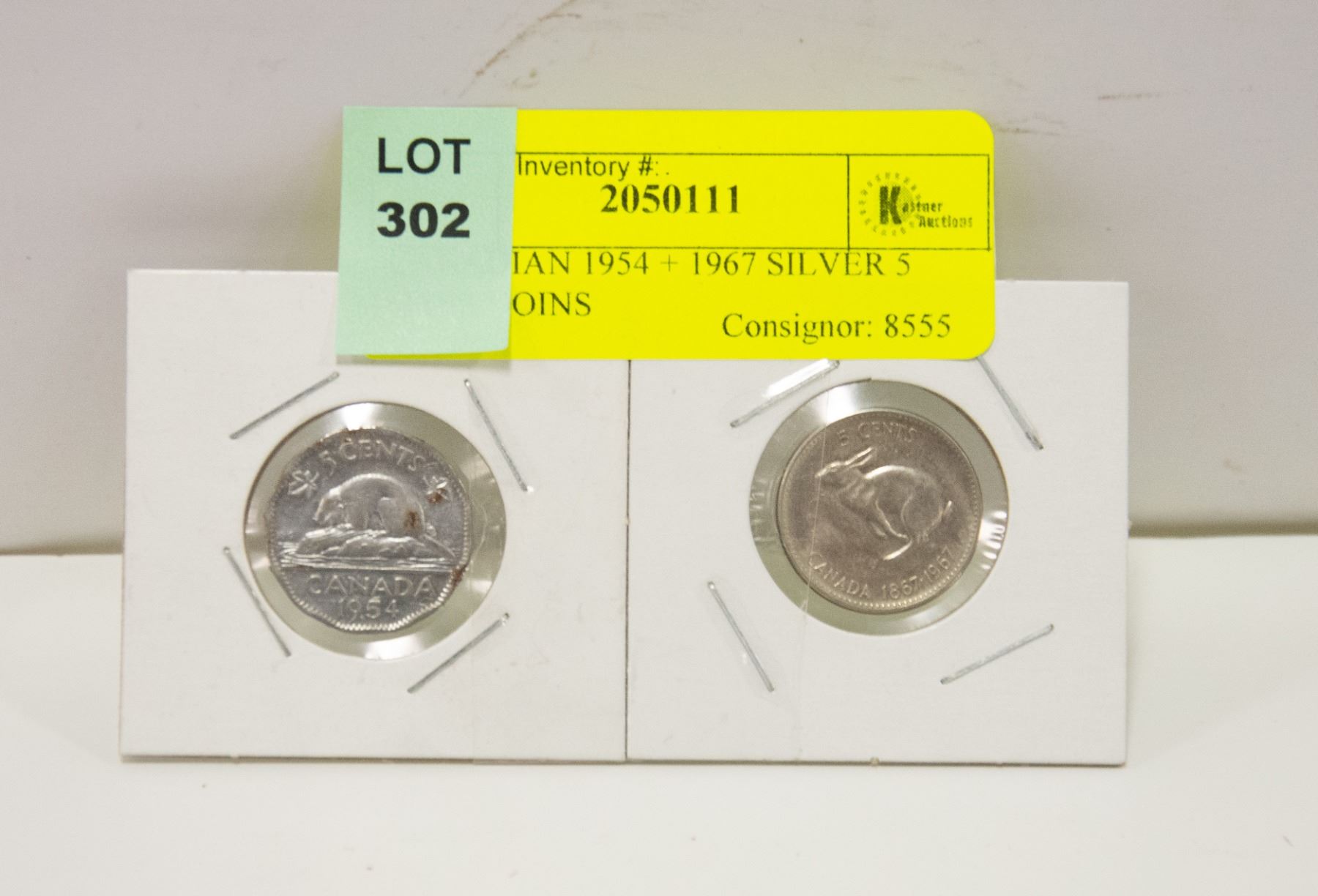 CANADIAN 1954 + 1967 SILVER 5 CENT COINS
