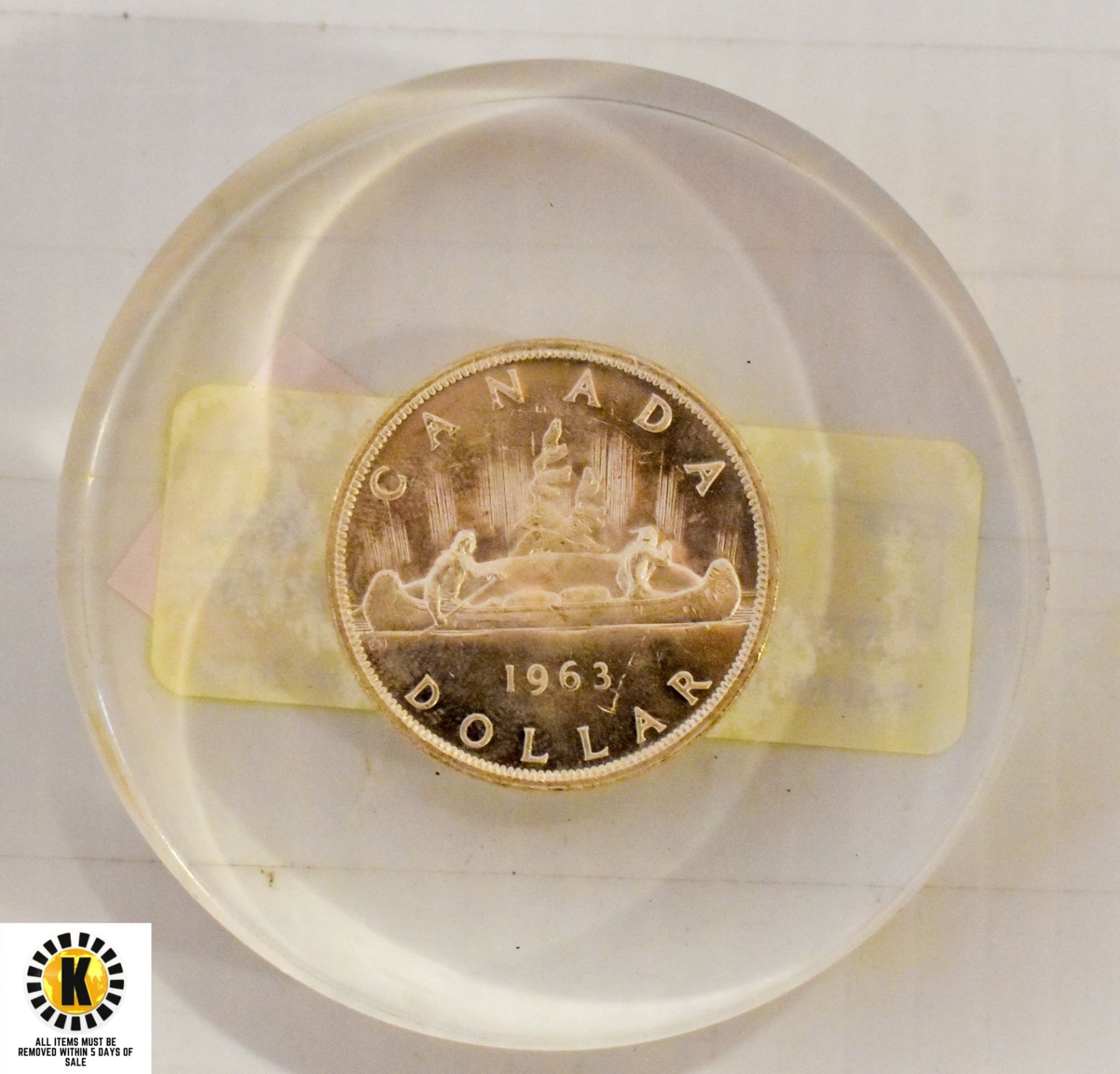 CANADIAN 1963 ONE DOLLAR COIN PAPER WEIGHT COIN