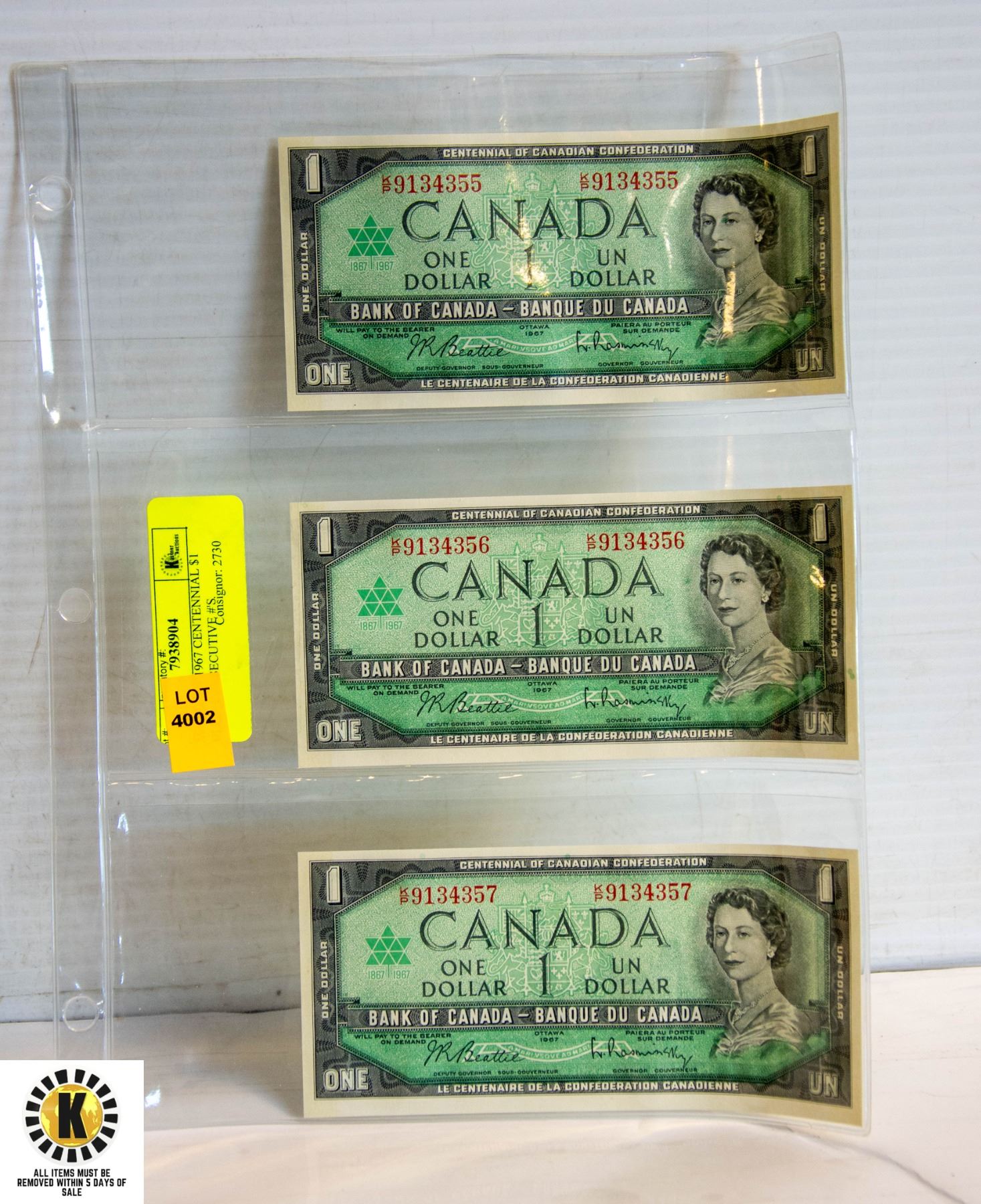 CANADIAN 1967 CENTENNIAL $1 BILLS- CONSECUTIVE #'S