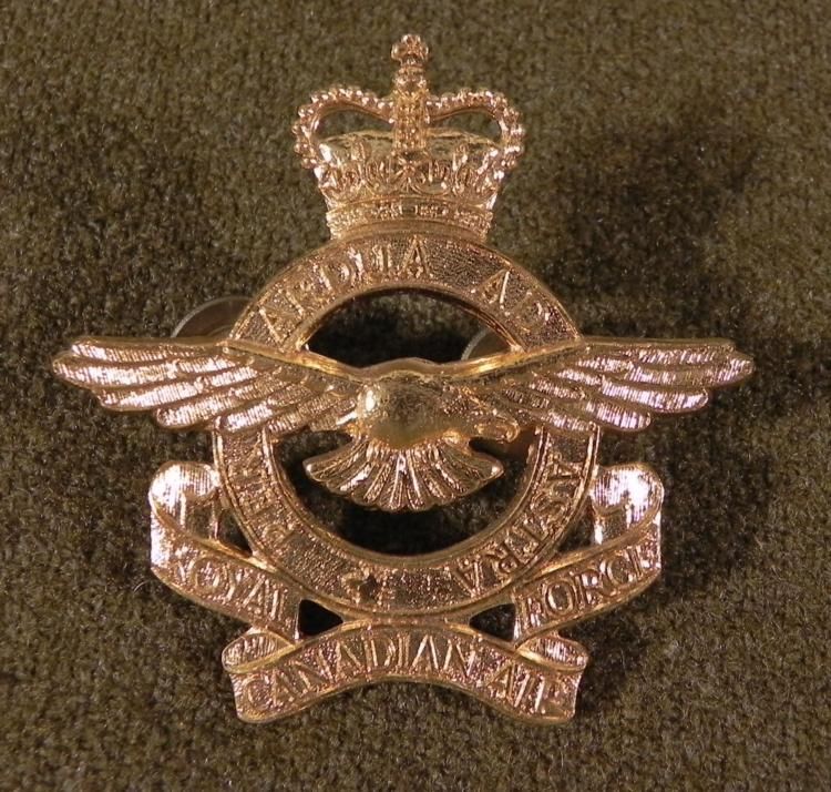 THIS IS A CANADIAN AIR FORCE INSIGNIA. IT LARGE WITH A CROWN AND A SCREW BACK. THE DIMENSIONS OF THE INSIGNIA ARE 2 1/4" X 2". *