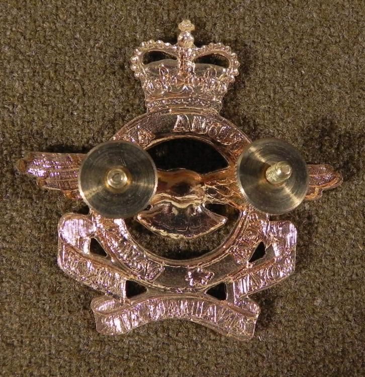 THIS IS A CANADIAN AIR FORCE INSIGNIA. IT LARGE WITH A CROWN AND A SCREW BACK. THE DIMENSIONS OF THE INSIGNIA ARE 2 1/4" X 2". *