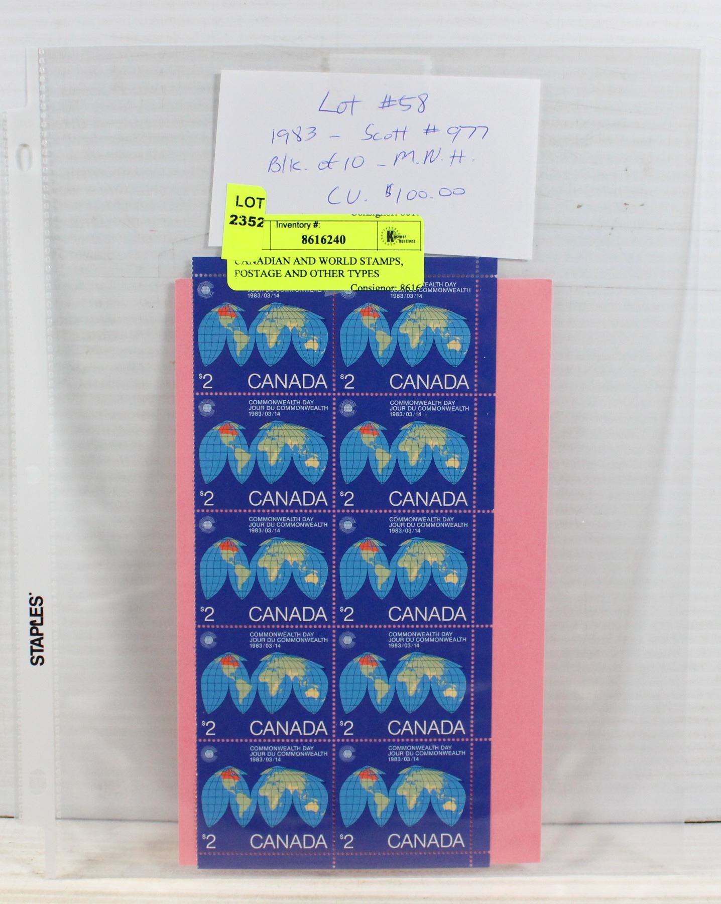 CANADIAN AND WORLD STAMPS, POSTAGE AND OTHER TYPES